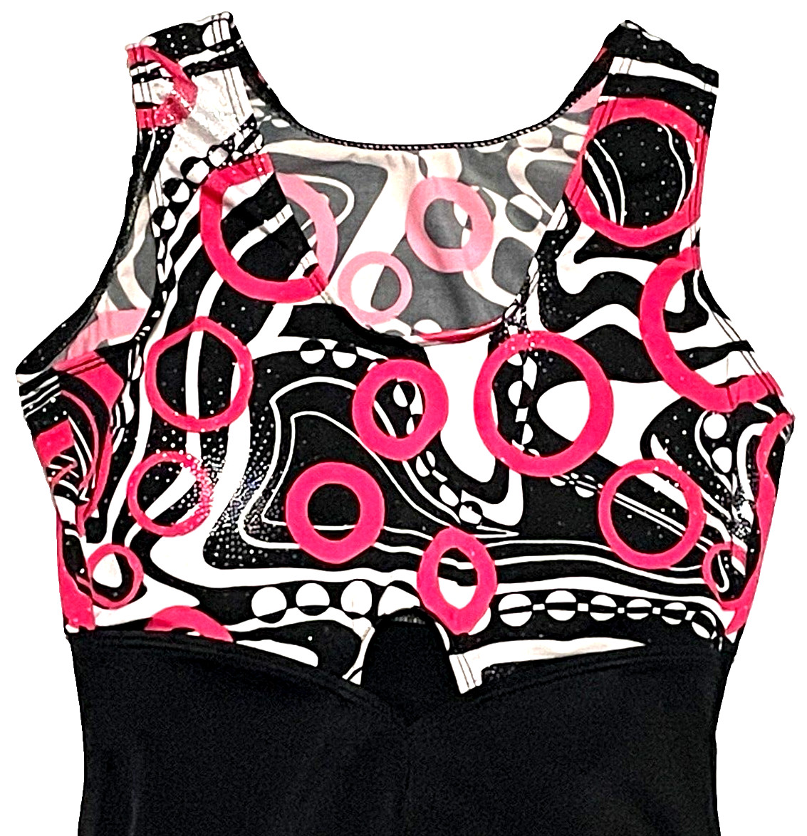 GK Elite Leotard Tank Bodysuit Black White Geometric Design Keyhole New Women S