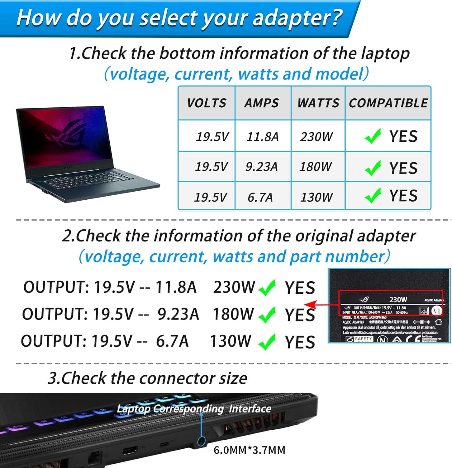 COMPATIBLE WITH ASUS LAPTOP: Replacement for Asus 230W Adapter designed for Asus ROG FX95G