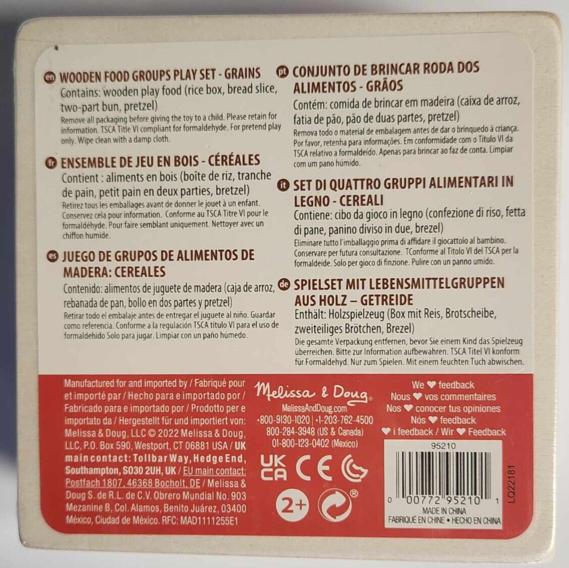 Melissa Doug Kids Food Groups Wooden Food Play Set Rice, Bread, Buns Pretzel