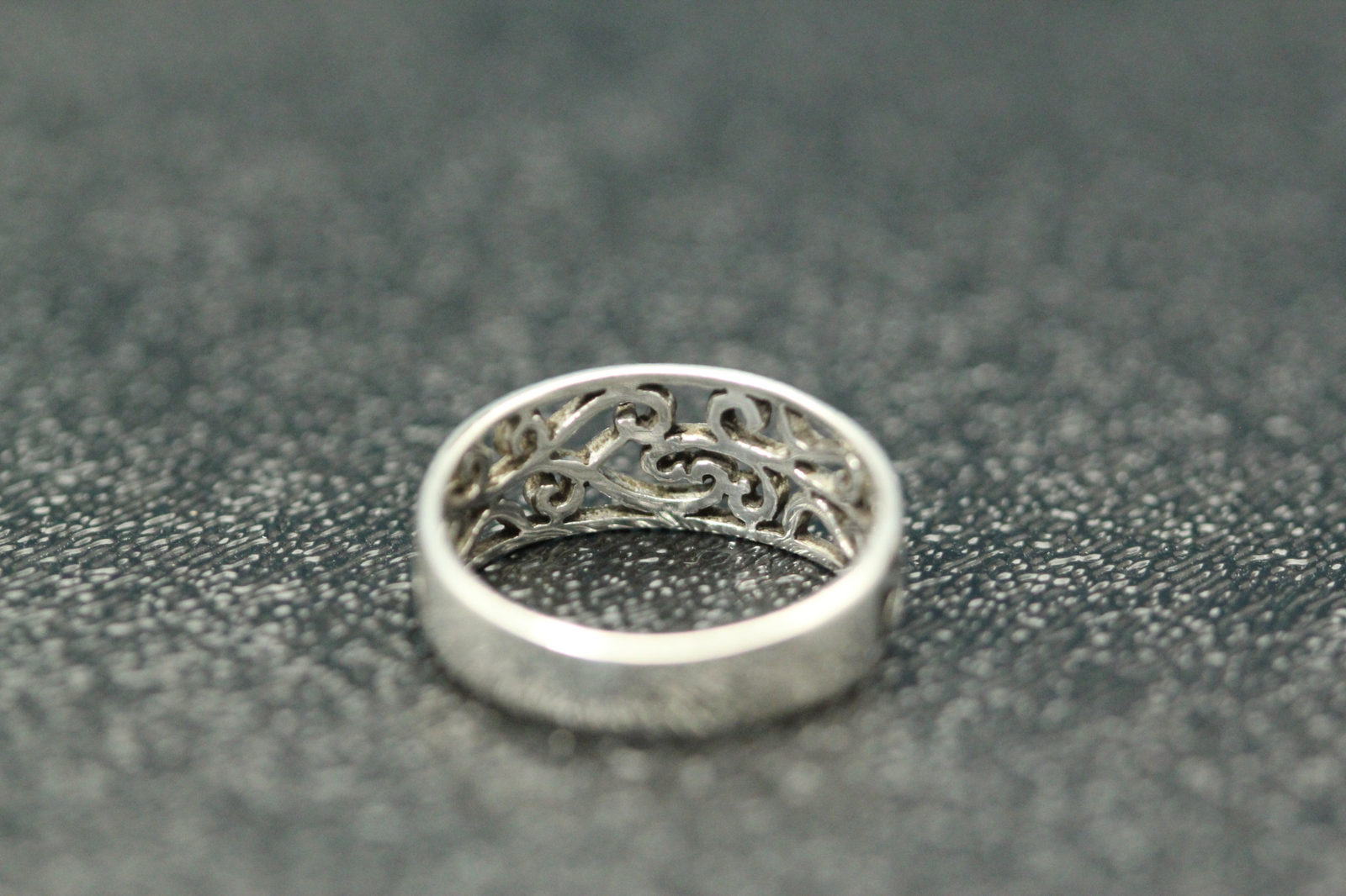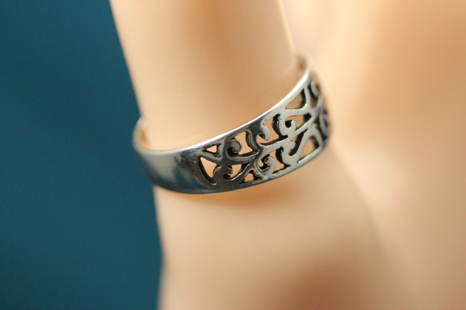 925 Sterling Silver Size 7.25 Swirl Design Pierced Band Ring 2.4 Grams RIN8847