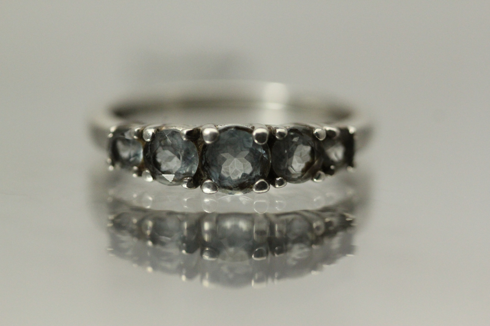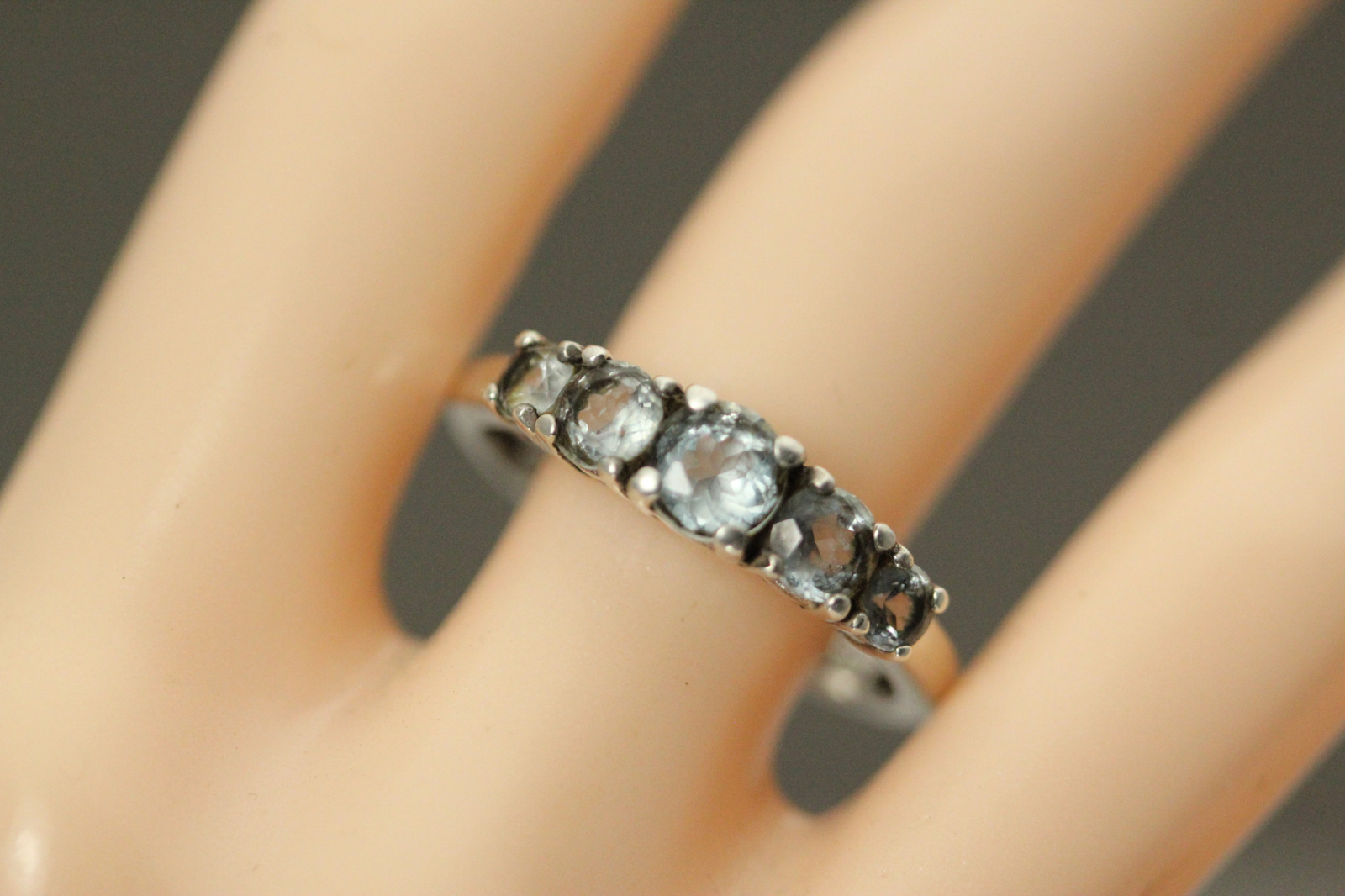 925 Sterling Silver Size 10.25 Light Blue CZ Five Stone Ring 3.2 Grams RIN8872