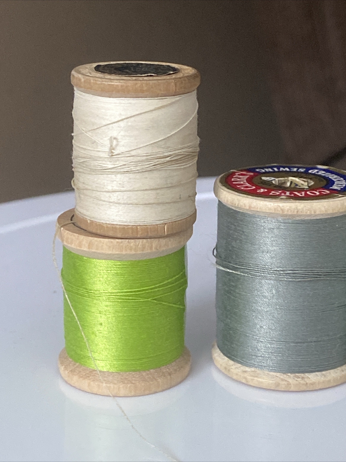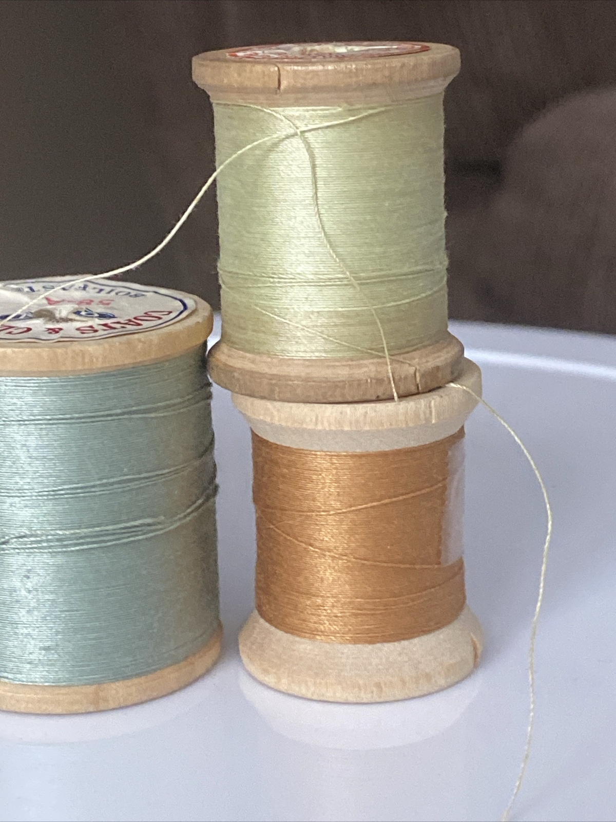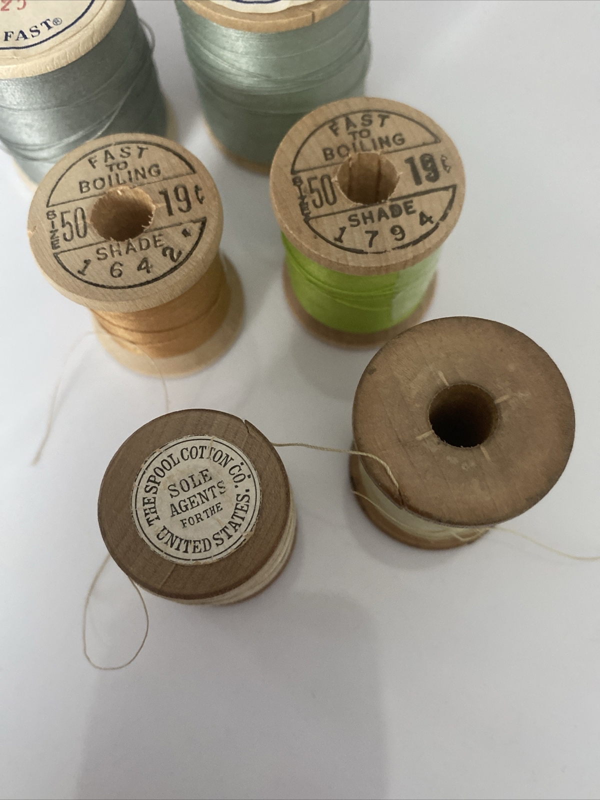 6 Vintage Wooden Spools Of Sewing Thread Corticelli Coats Clark J P Coats