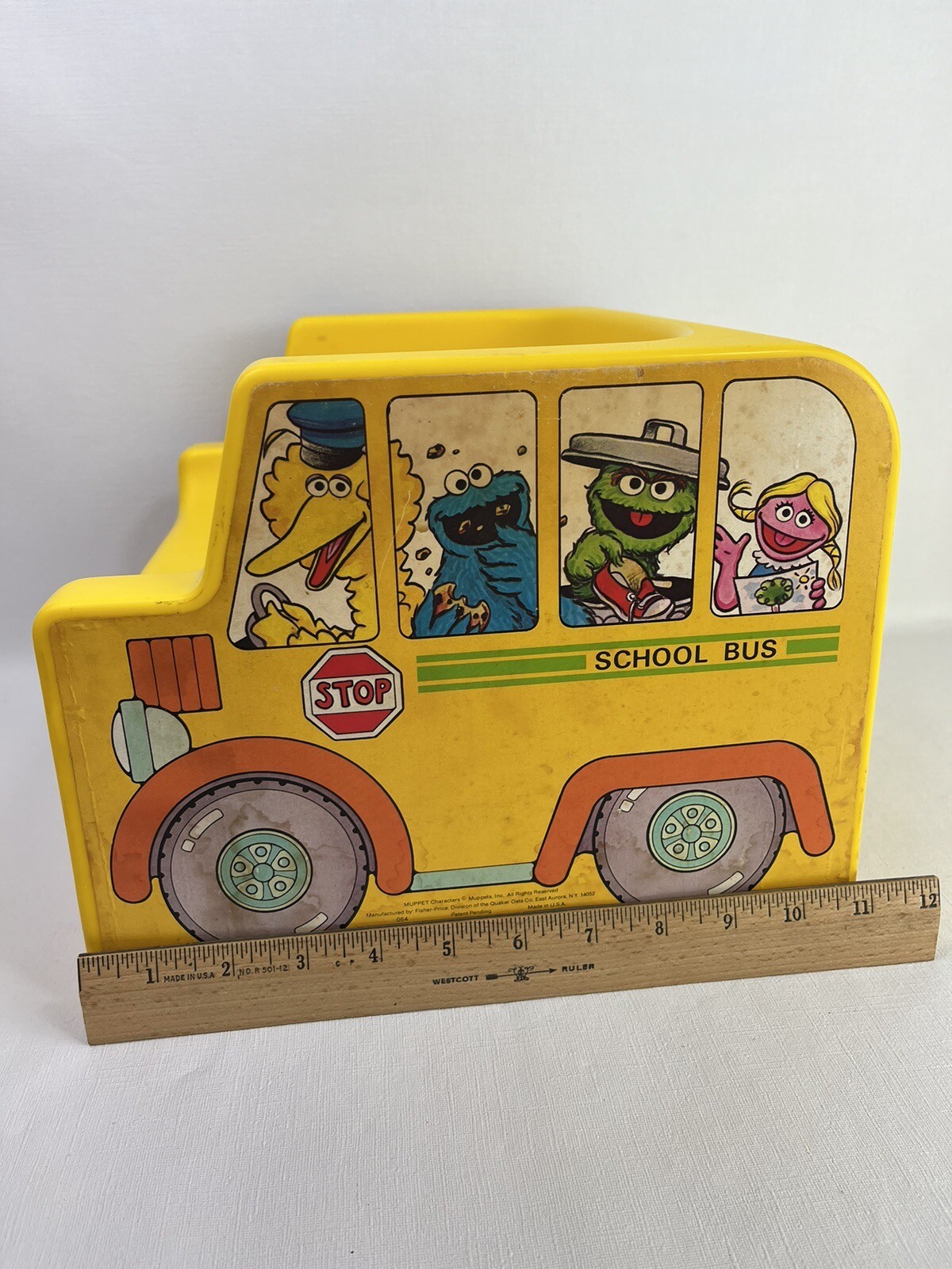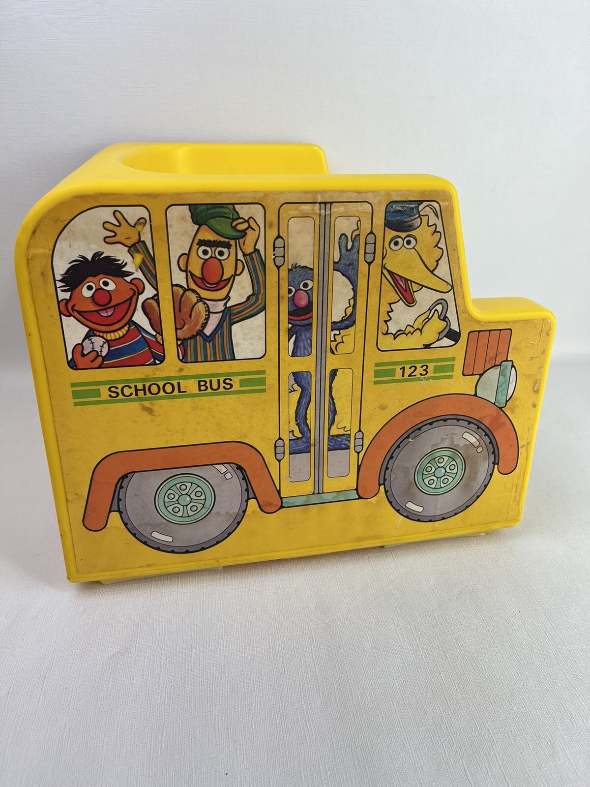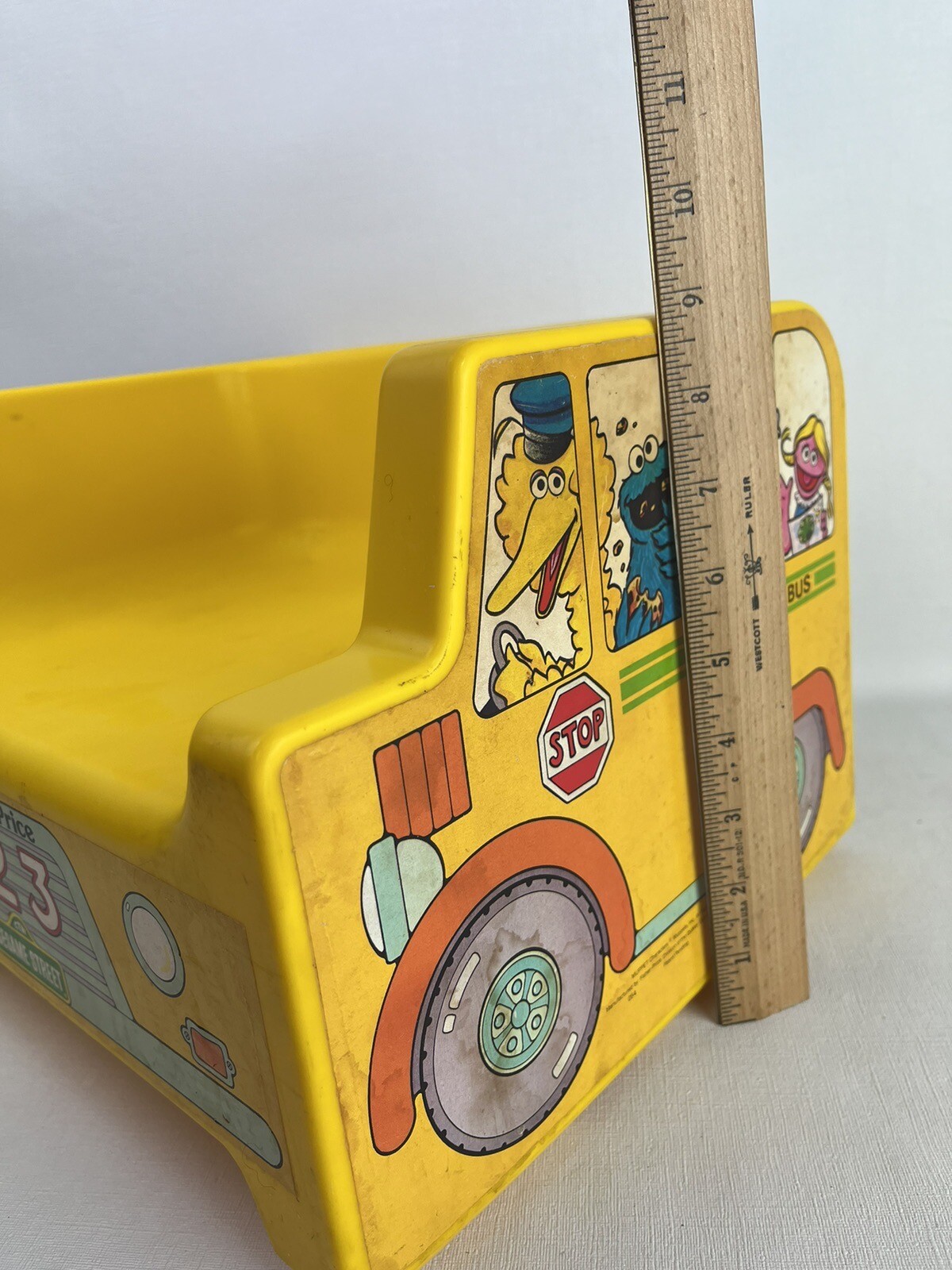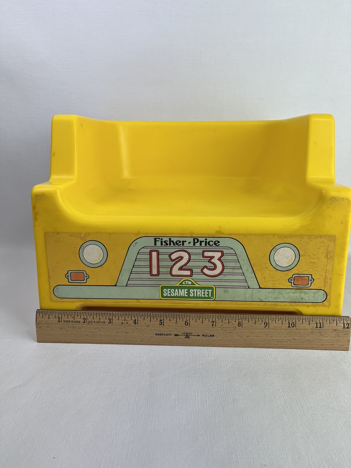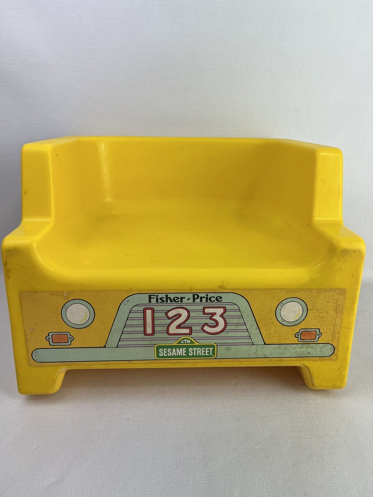 Sesame Street Fisher Price VTG Kids Yellow Plastic Chair School Bus 1984