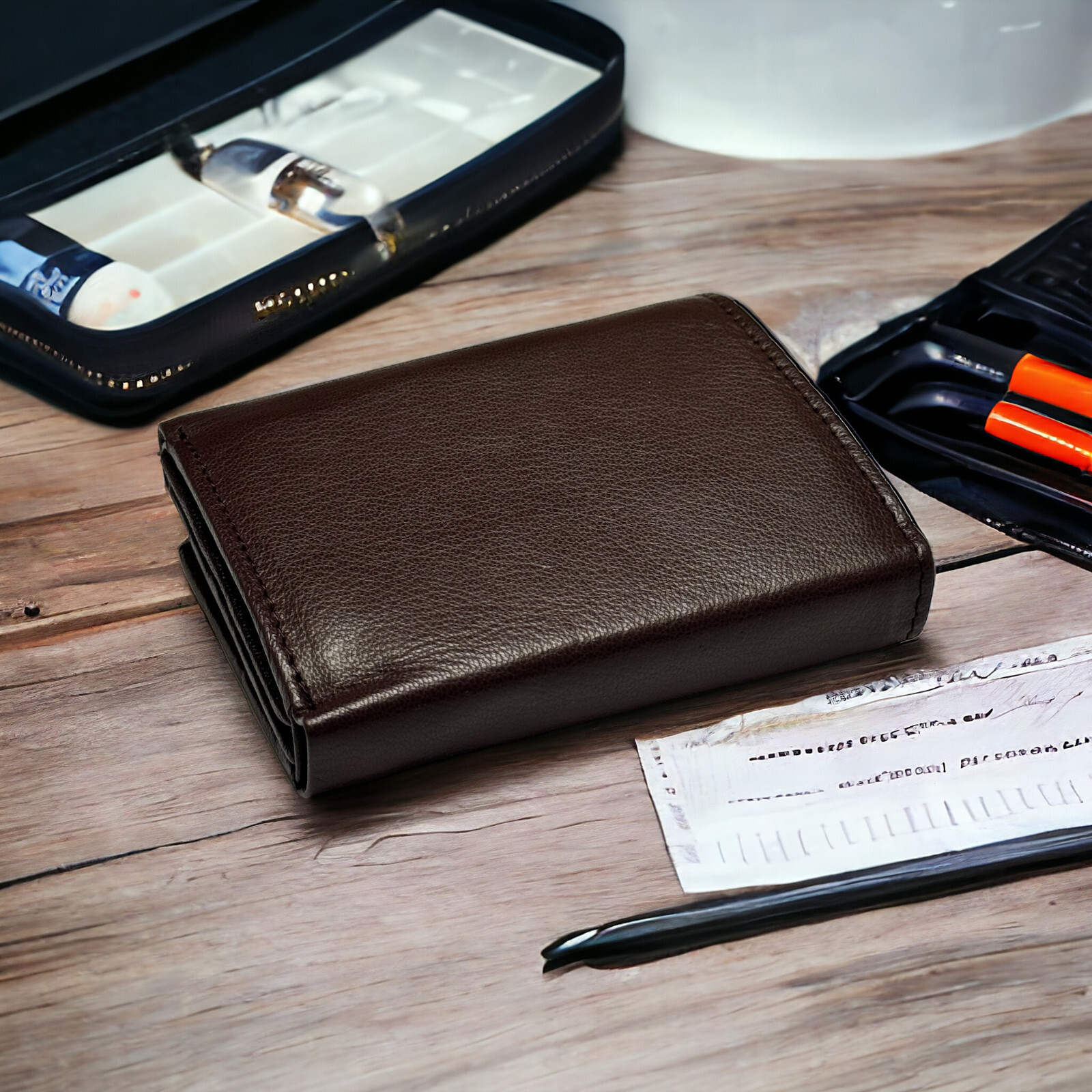 Leatherboss Mens RFID Blocking Hunter Leather Credit Card ID Trifold Wallet