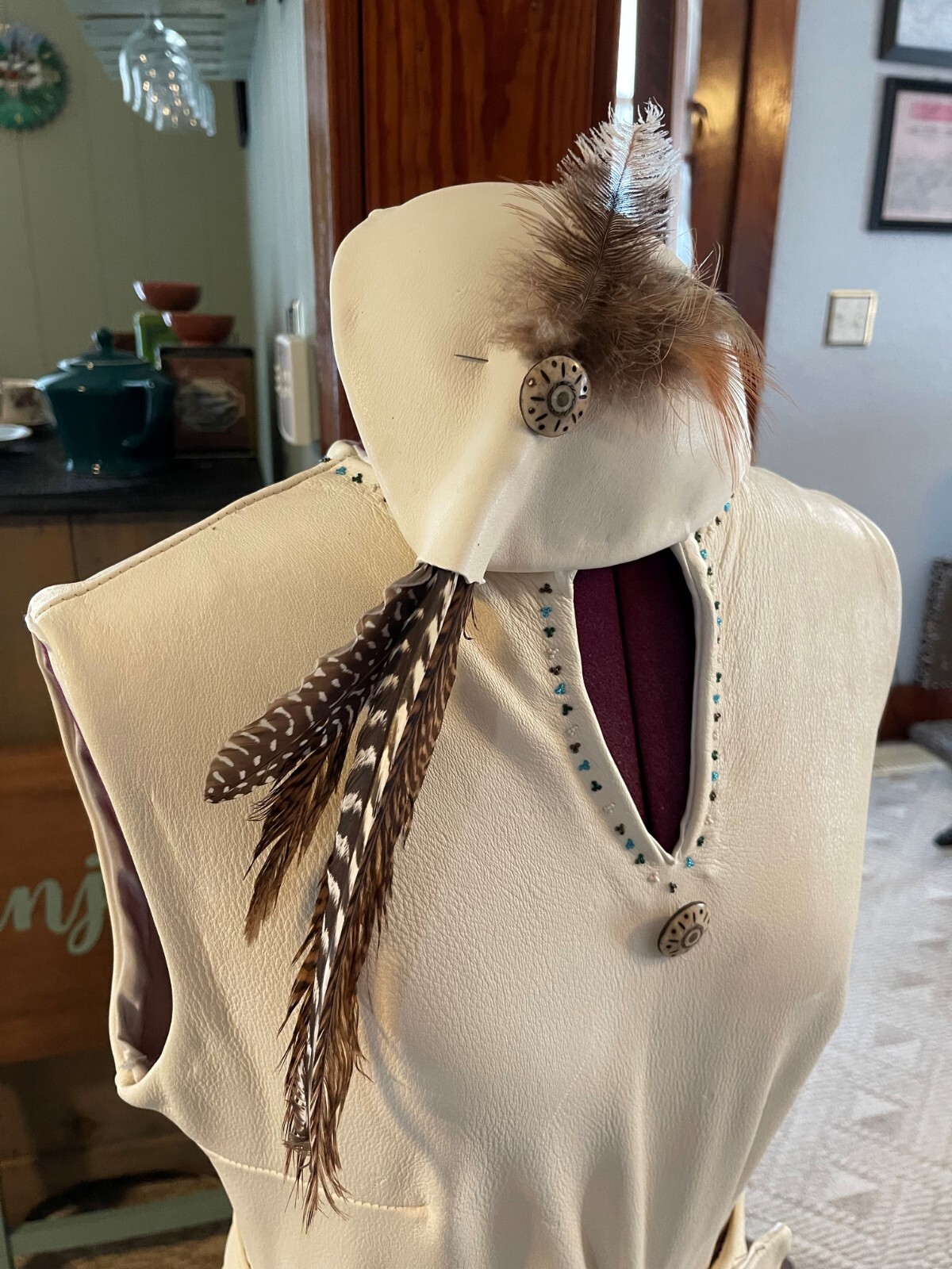 как выглядит 2002 Native American Ivory DoeSkin Blackfeet Beaded Wedding Dress/ Unique/Small фото