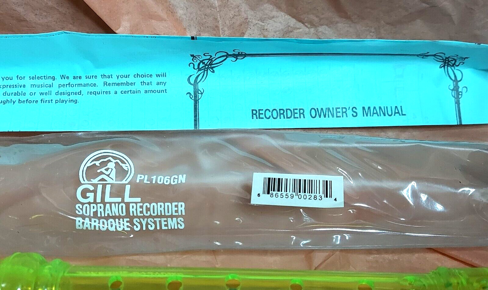 3 X Gill Soprano Recorder Baroque Systems PL106GN Translucent Green, Rod, Case