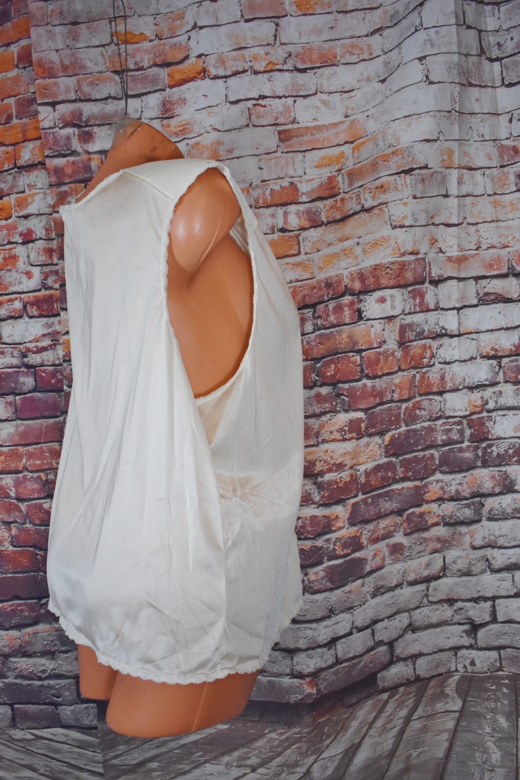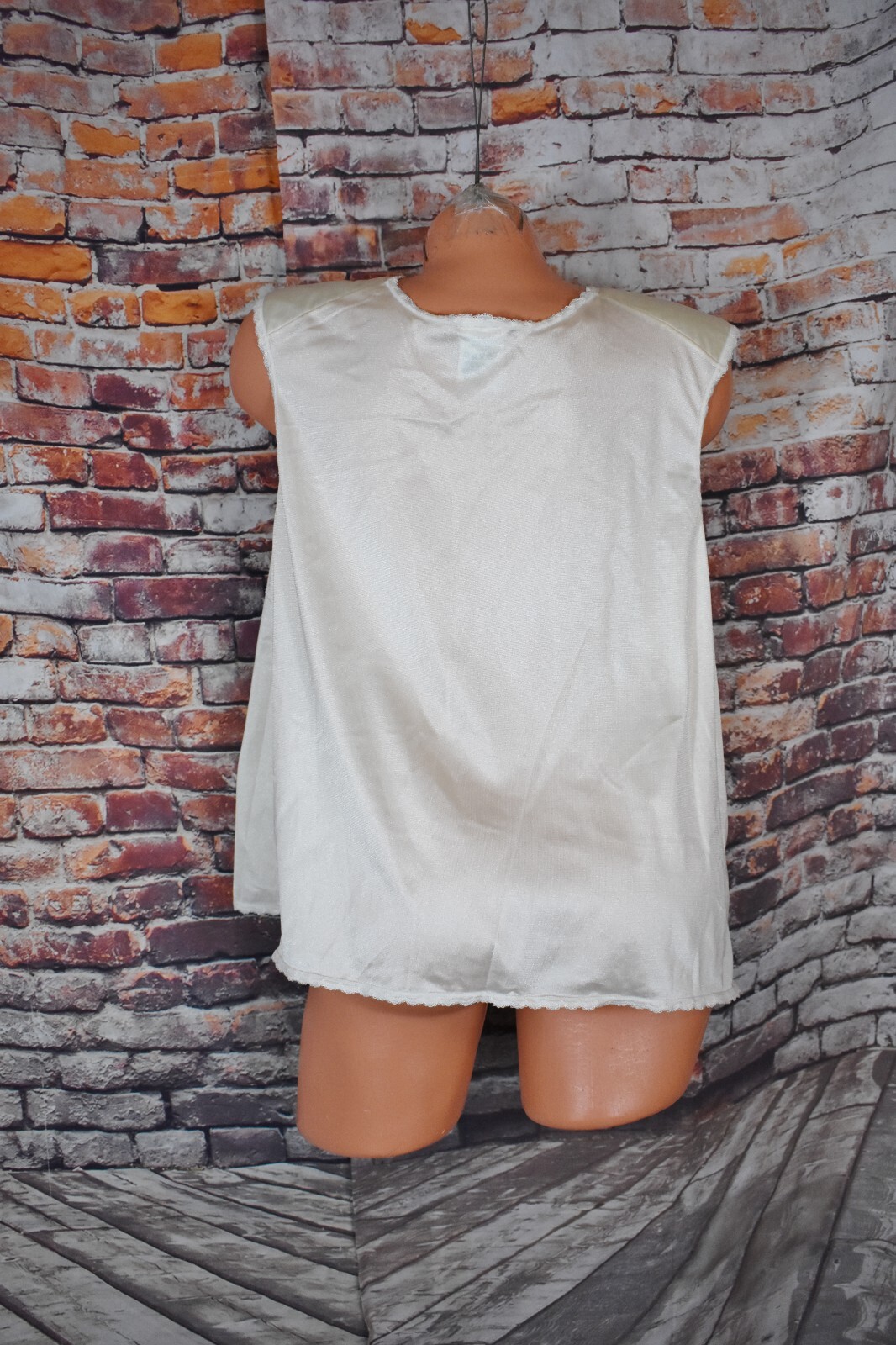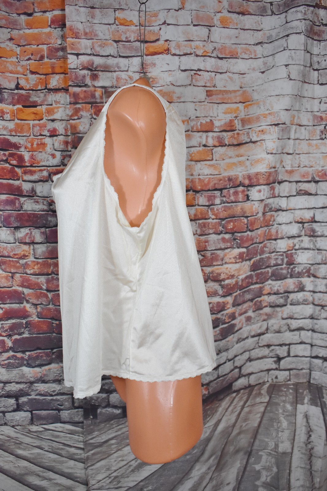 как выглядит Velrose Vintage Plus Size 2X Satin Camisole W Shoulder Pads Off White Lace Trim фото
