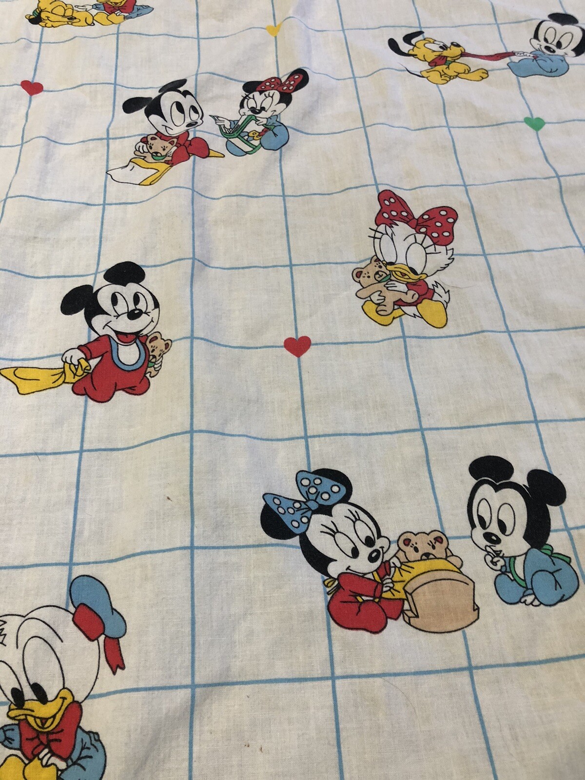 как выглядит Used Vintage Dundee Disney Babies Baby Mickey Minnie Mouse Fitted Crib Sheet фото