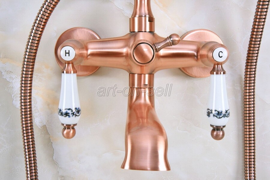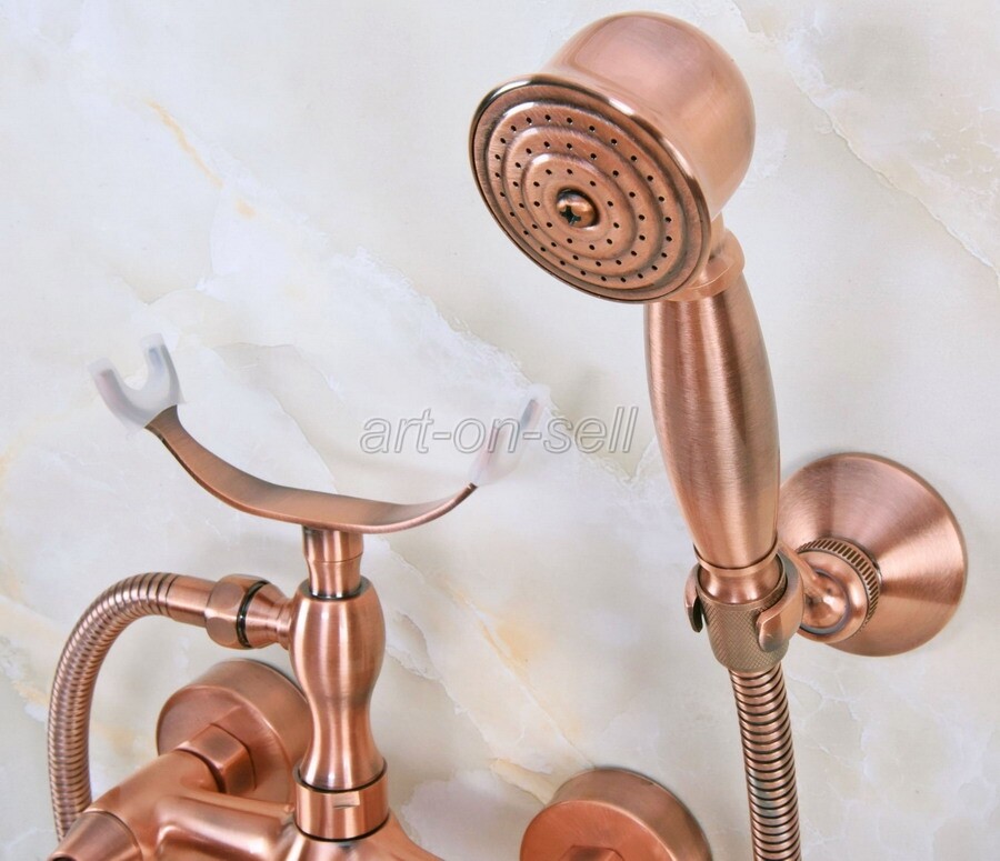Antique Red Copper Wall Mounted Clawfoot Bath Tub Faucet Mixer Tap W/ Handshower