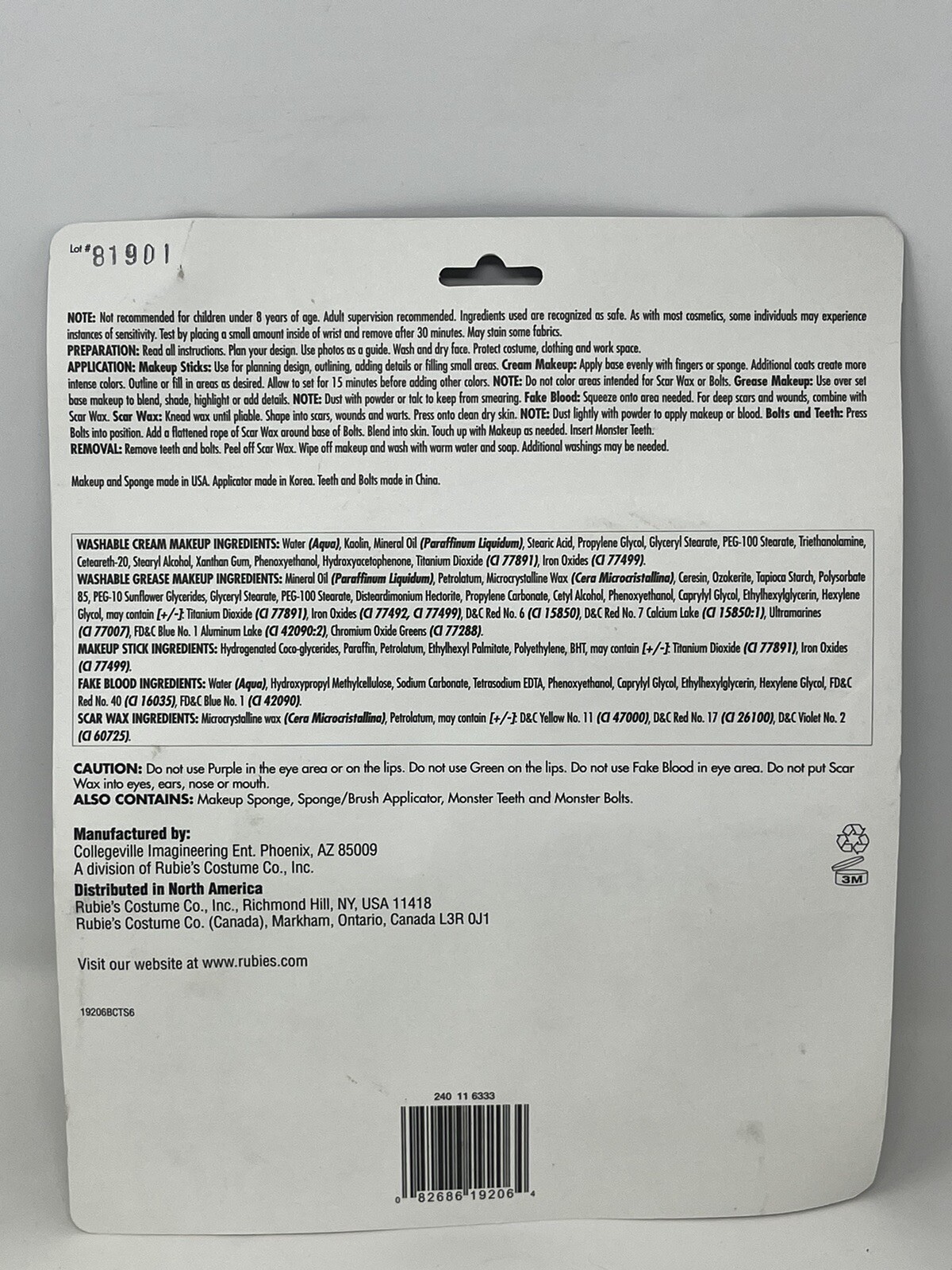Monster Makeup and Accessories Kit Halloween Costume Water Washable Blood Teeth