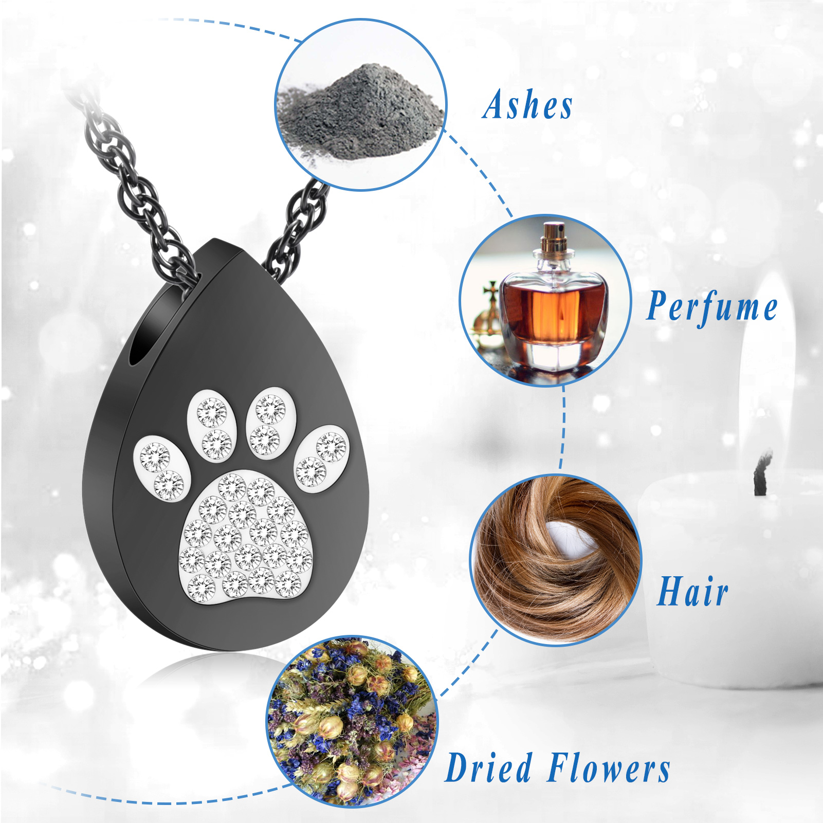 Paw Print Urn Necklace for Ashes Cremation Necklace for Pet Ashes Ash Necklace