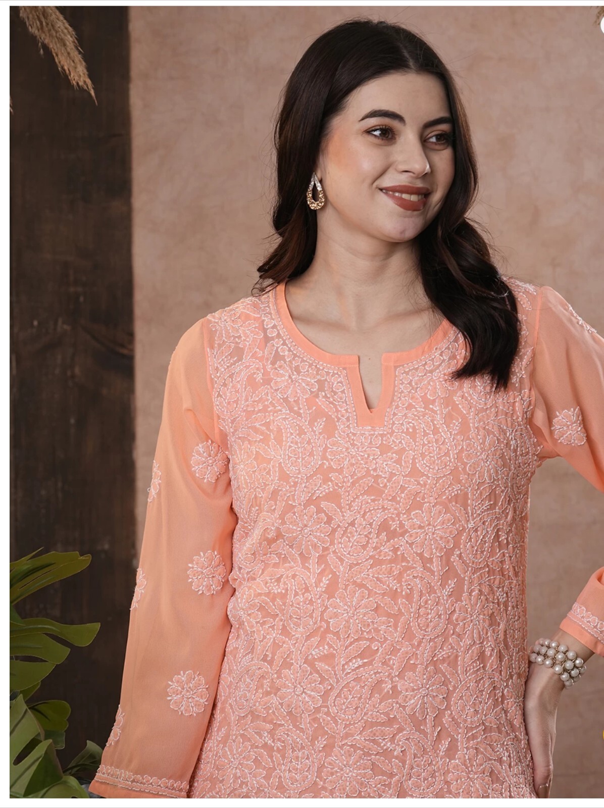 как выглядит Kurti Chikankari for women short kurti georgette kurti soft fabric with inner фото
