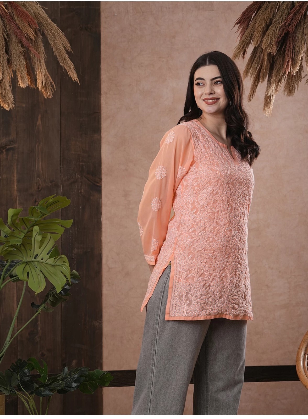 Kurti Chikankari for women short kurti georgette kurti soft fabric with inner