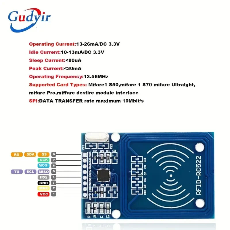 RFID Kit - Mifare RC522 RF IC Card Sensor Module S50 Blank Card Key Ring