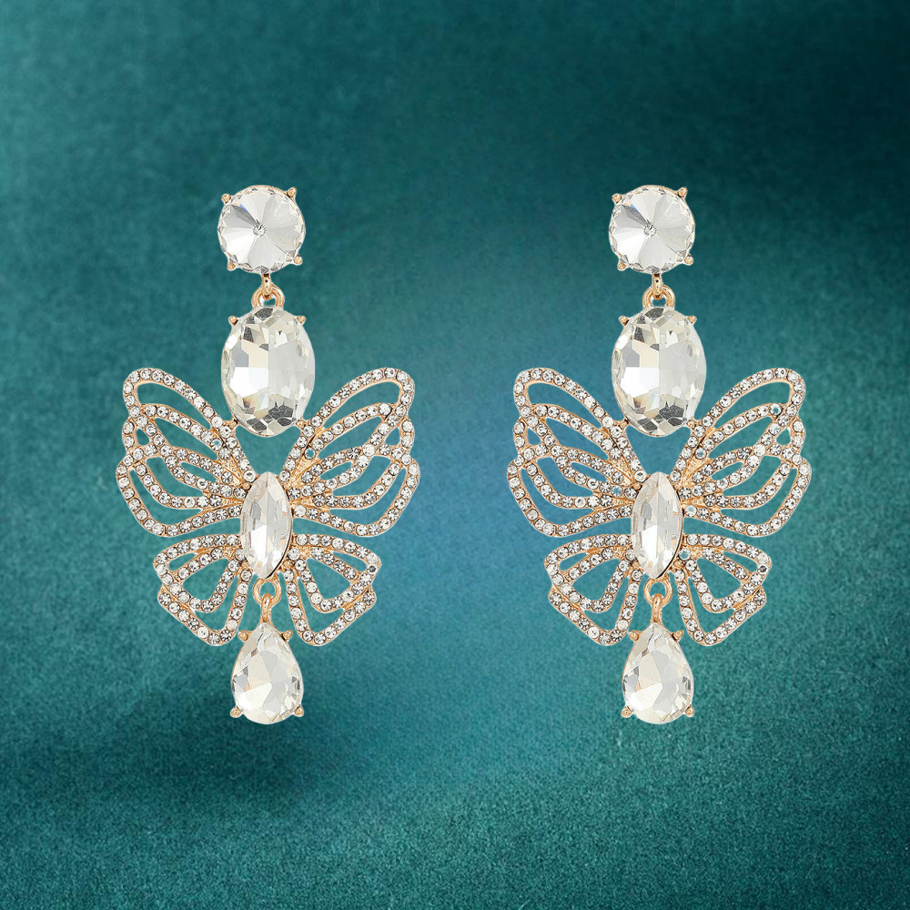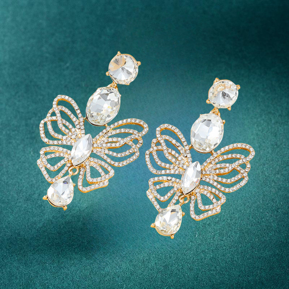 Women's Clear Crystal Rhinestone Butterfly Dangle Stud Earrings
