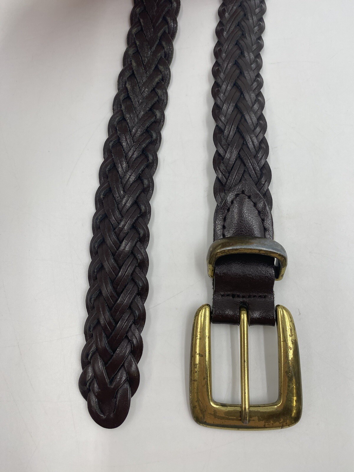 как выглядит Womens Belt Genuine Leather Braided Brown And Gold Buckle Size ML Pre-Owned Used фото