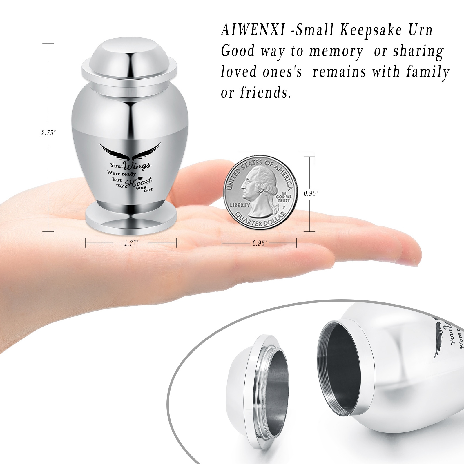 как выглядит Small Keepsake Urns for Human Ashes Mini Cremation Urns for Ashes Wings Mini Urn фото