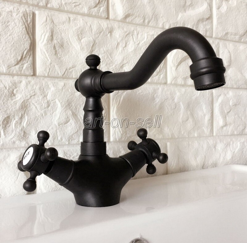 как выглядит Oil Rubbed Brass Dual Handle 360 Swivel Bathroom Sink Vanity Faucet Mixer Tap фото
