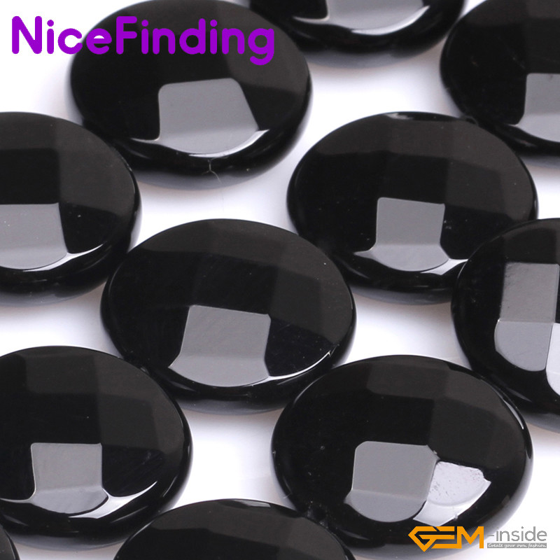 как выглядит Natural Black Agate Coin Faceted Onyx Gemstone Loose Beads Jewelry Making 15" фото
