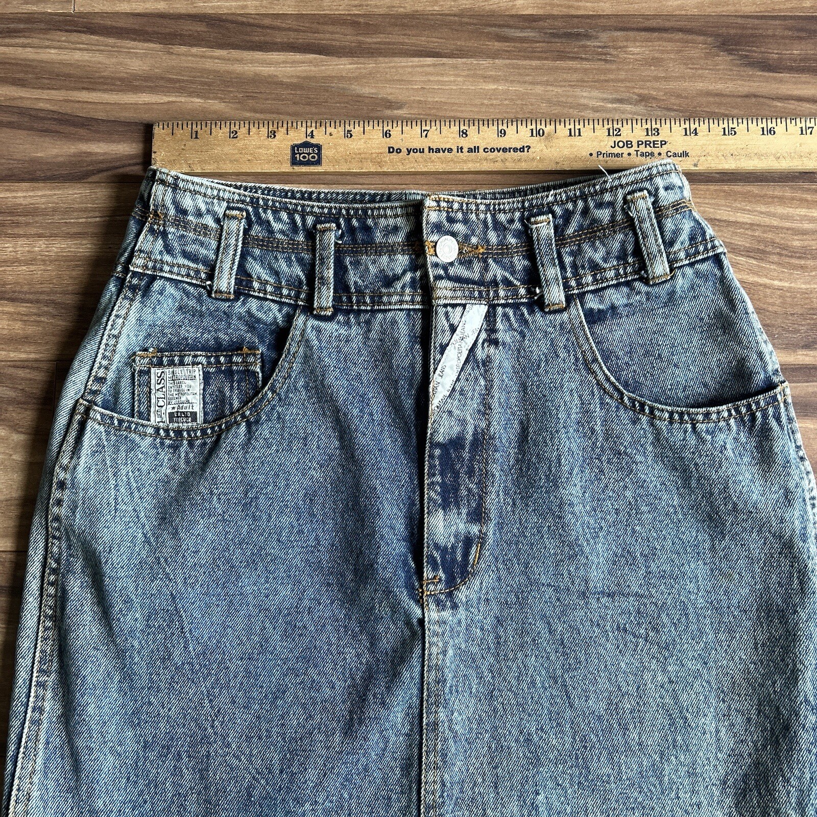 Vintage Jordache Denim Skirt Womens 10 Blue Midi 100 Cotton Acid Wash Jean