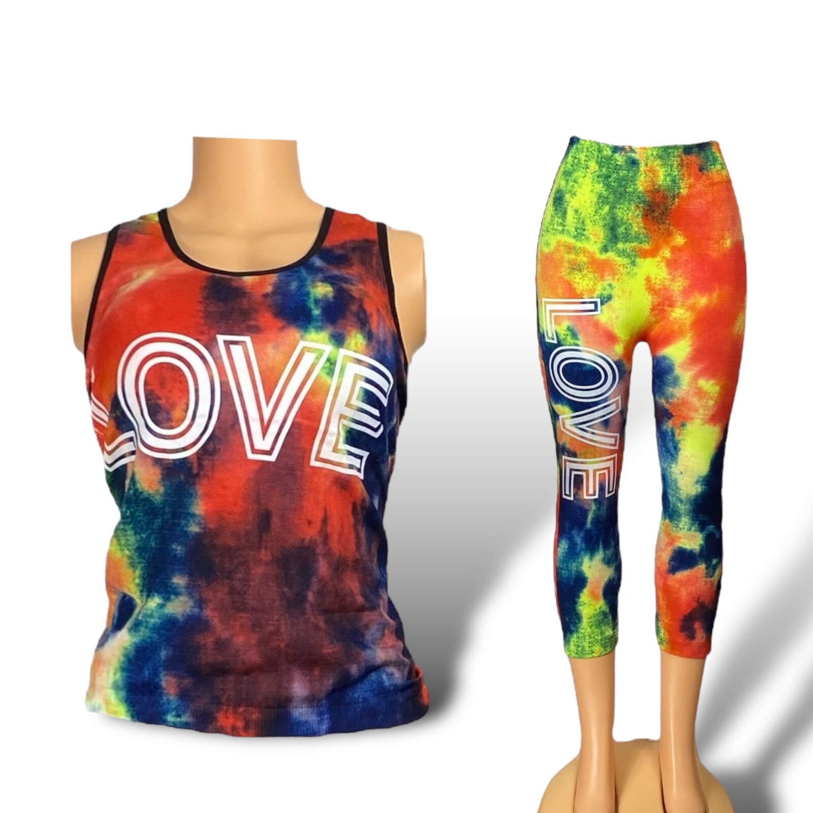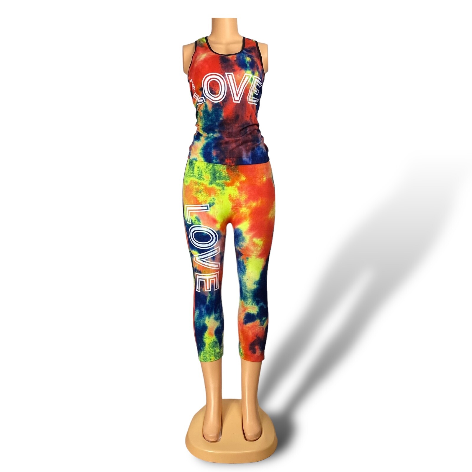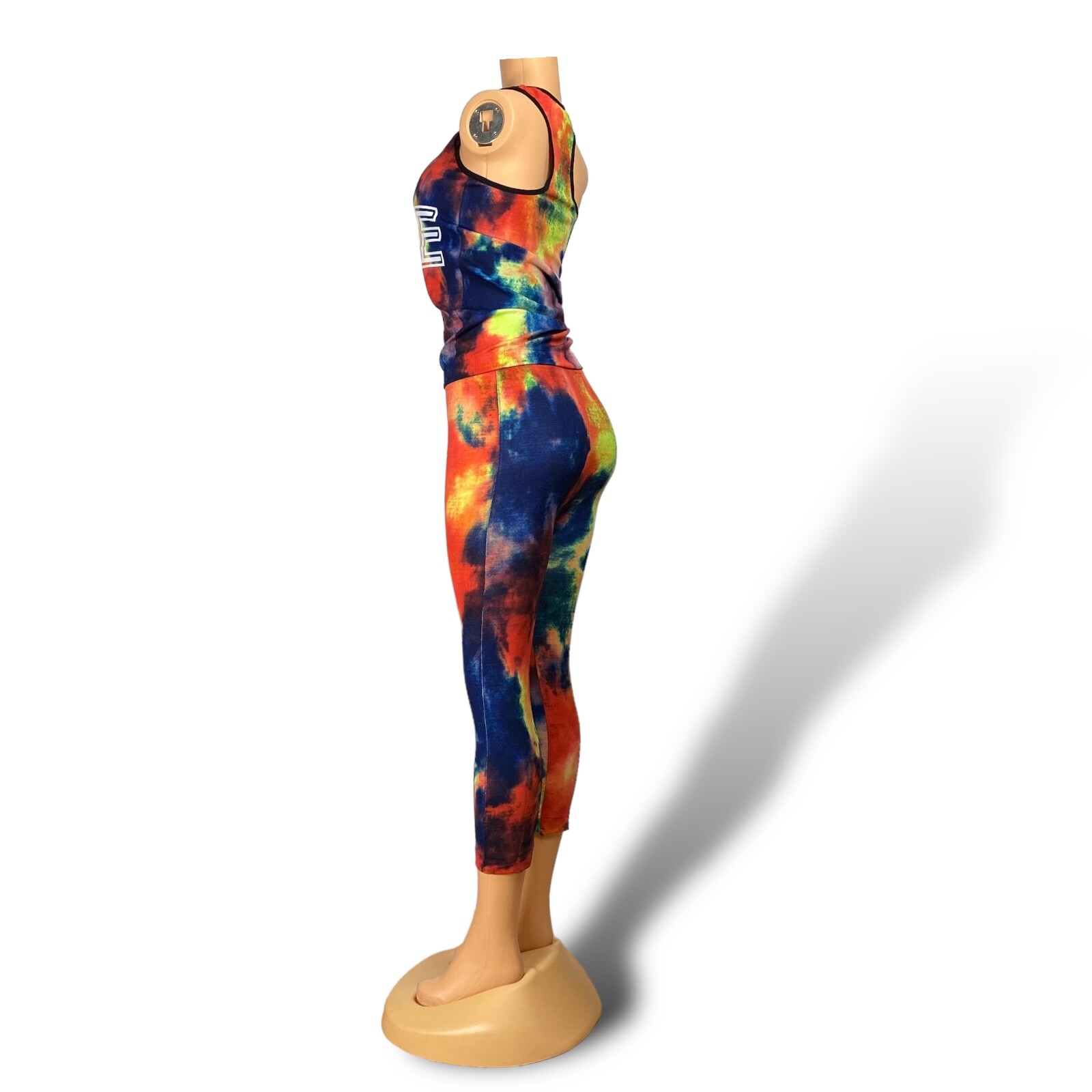 Women's Ribbed Two-Piece Activewear Set: Tie-Dye Leggings and Tank top