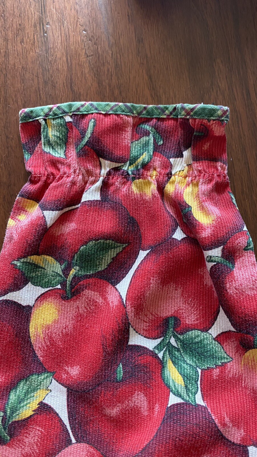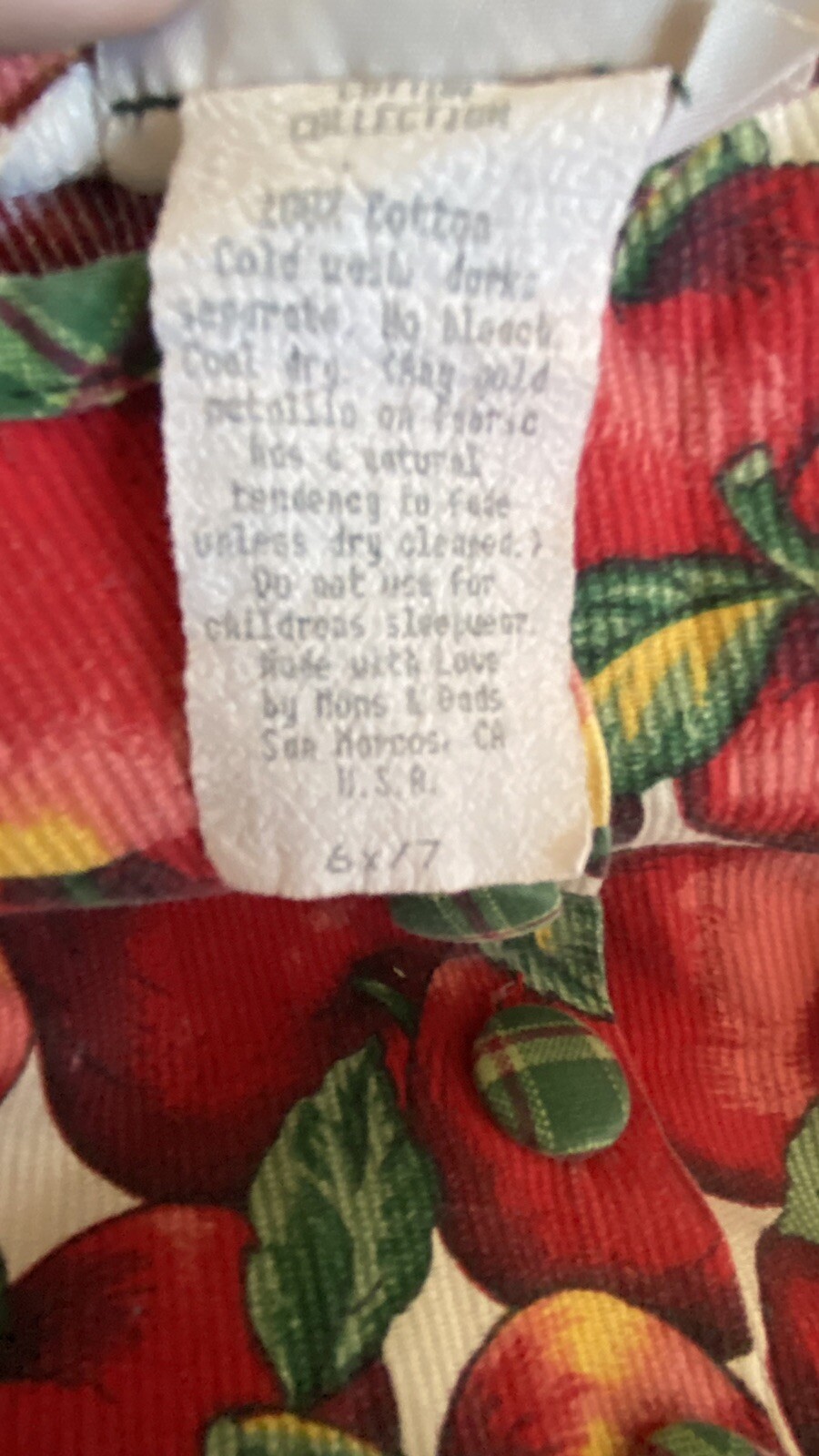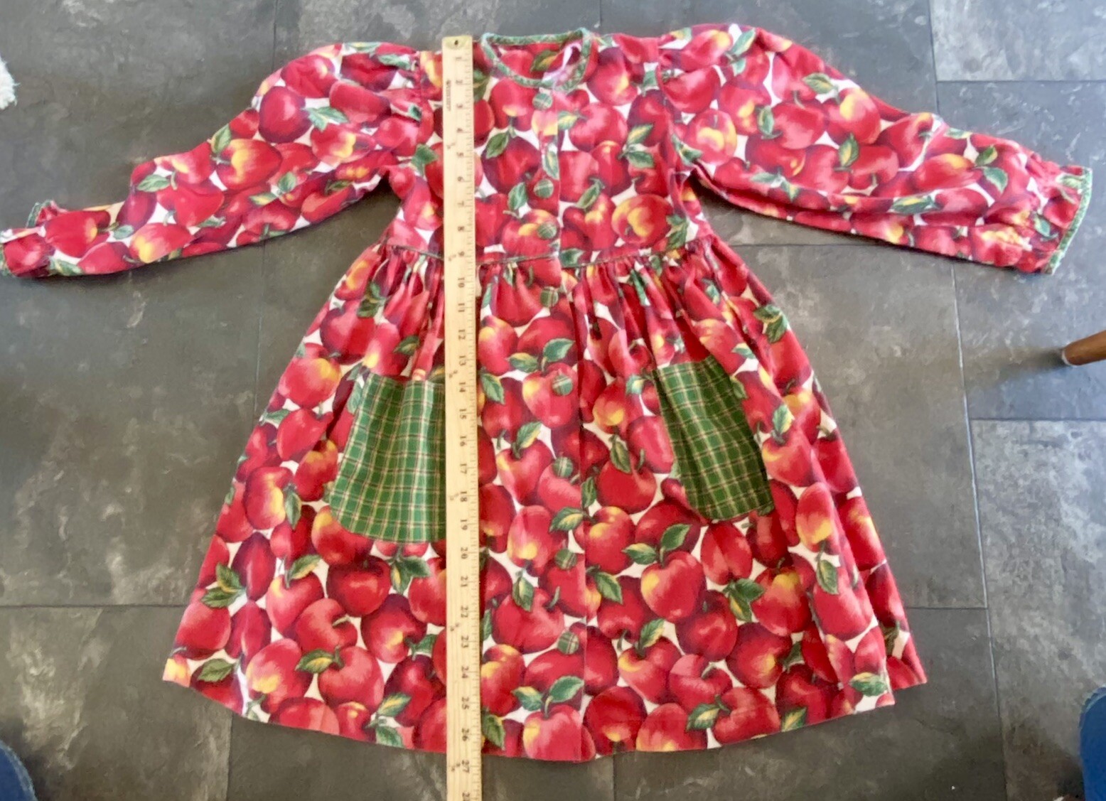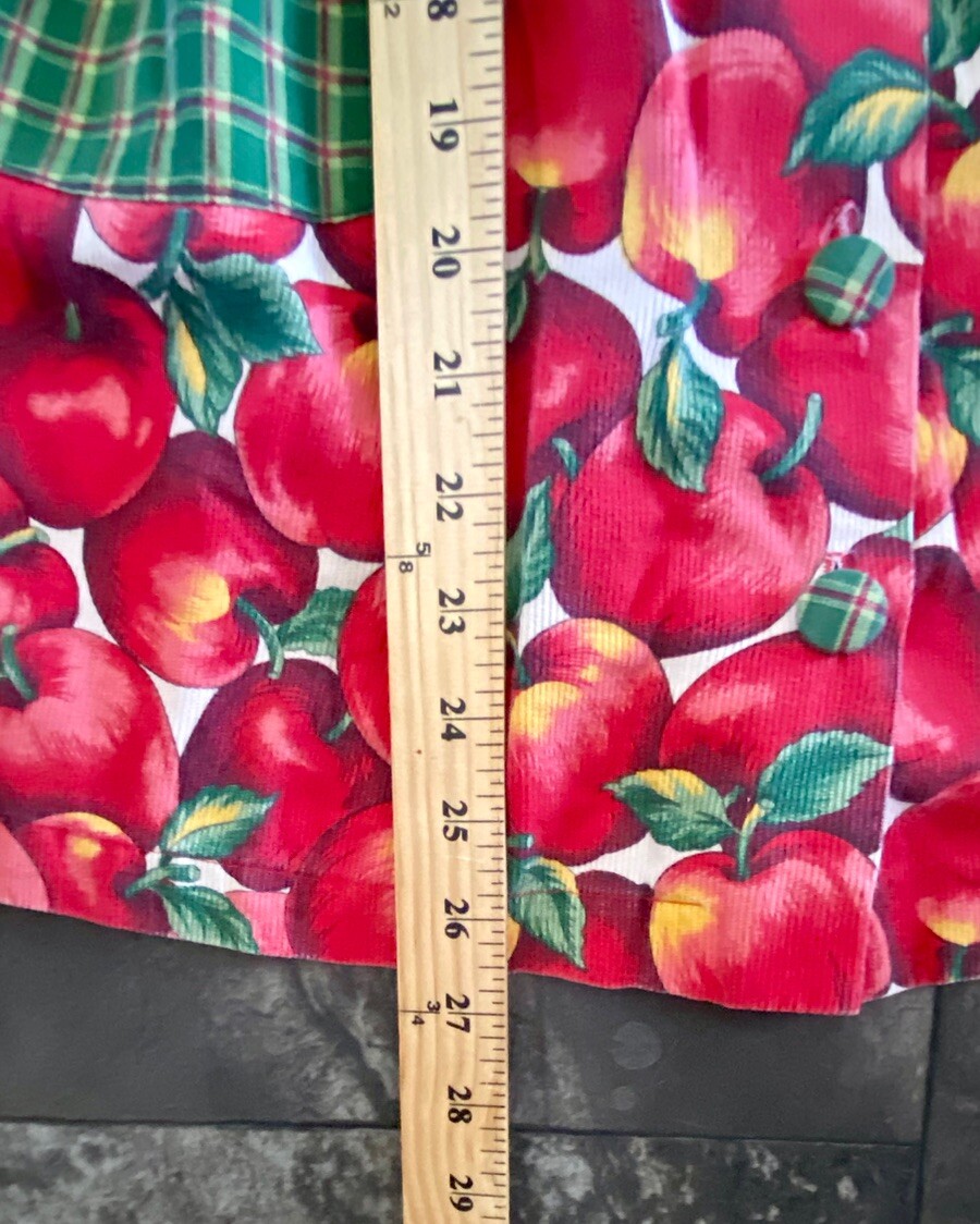 Vintage Girls Apple Print Dress Long Sleeve Size 6x-7 w/ Plaid Trim Fall Cottage