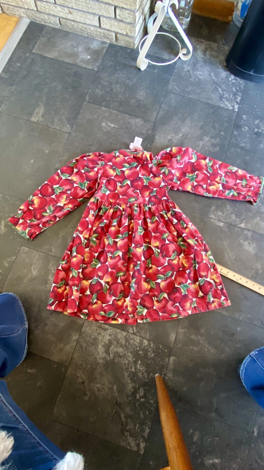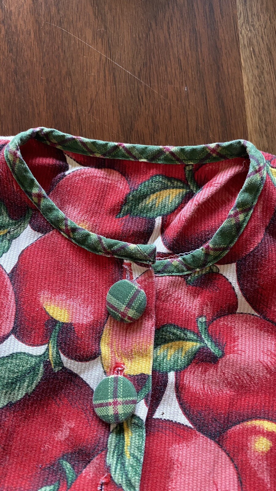как выглядит Vintage Girls Apple Print Dress Long Sleeve Size 6x-7 w/ Plaid Trim Fall Cottage фото