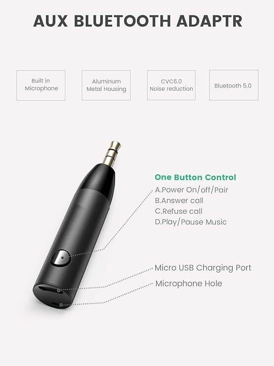 Adaptador Auxiliar Bluetooth para Coche Receptor de Audio Inal mbrico Bluetooth.