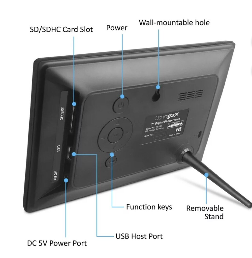 Sonicgrace 7 Digital Photo Frame Automatic Slide Show 1024x600 HD Resolution