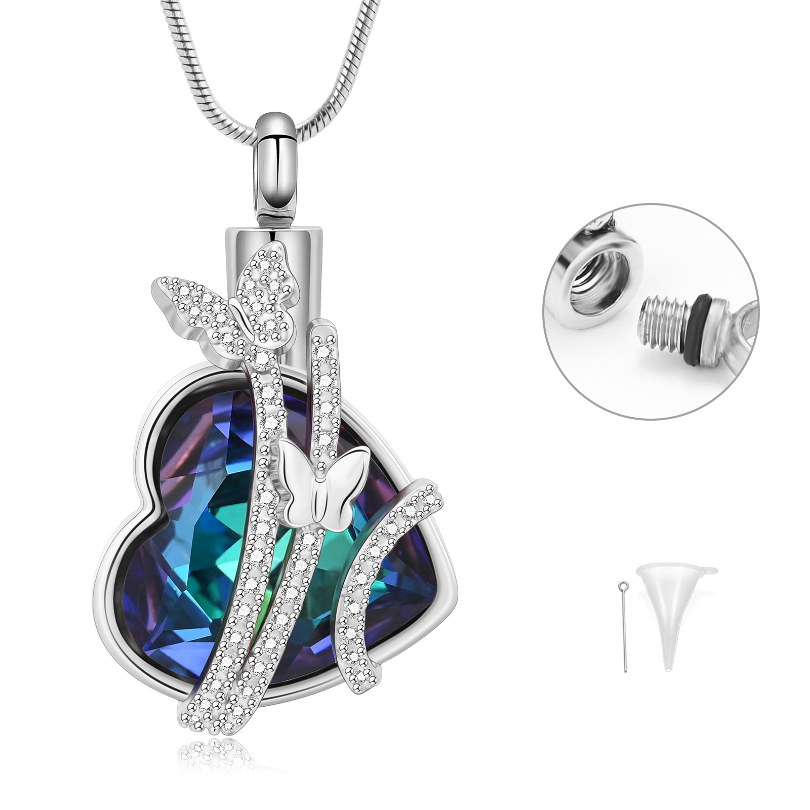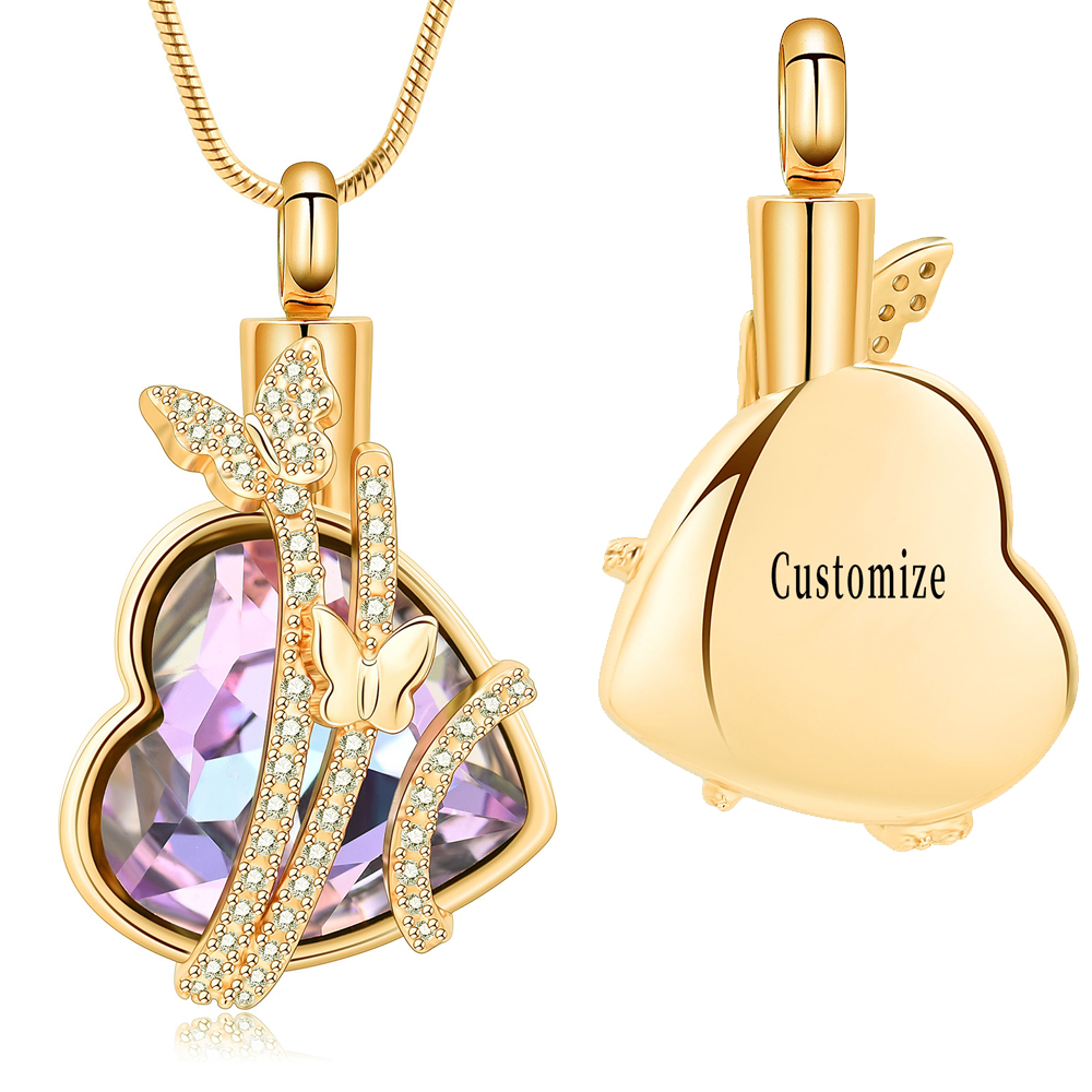 Butterfly Urn Necklace for Ashes Crystal Butterfly Memorial Ash Pendant Keepsake