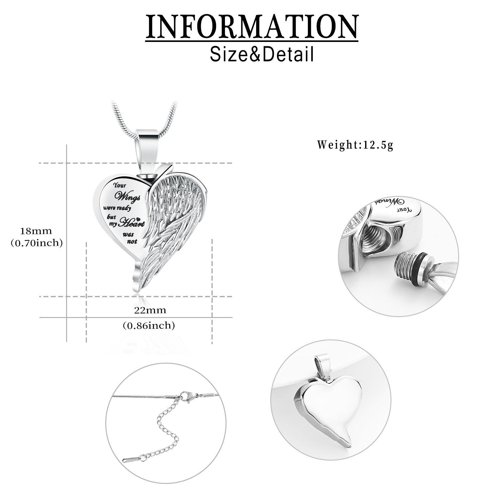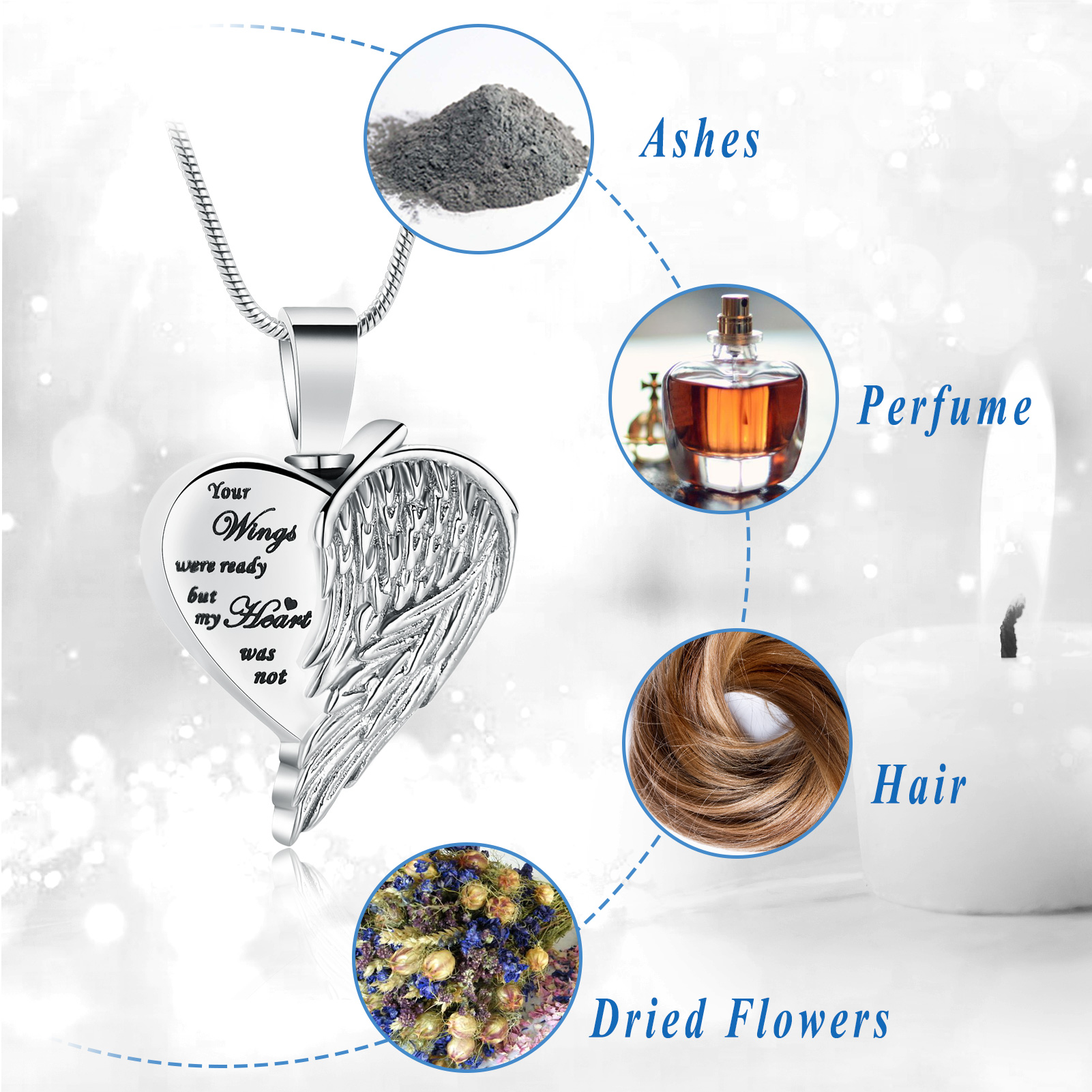 Angel Wing Cremation Necklace for Ashes Stainless Steel Urn Pendant Ashes Holder