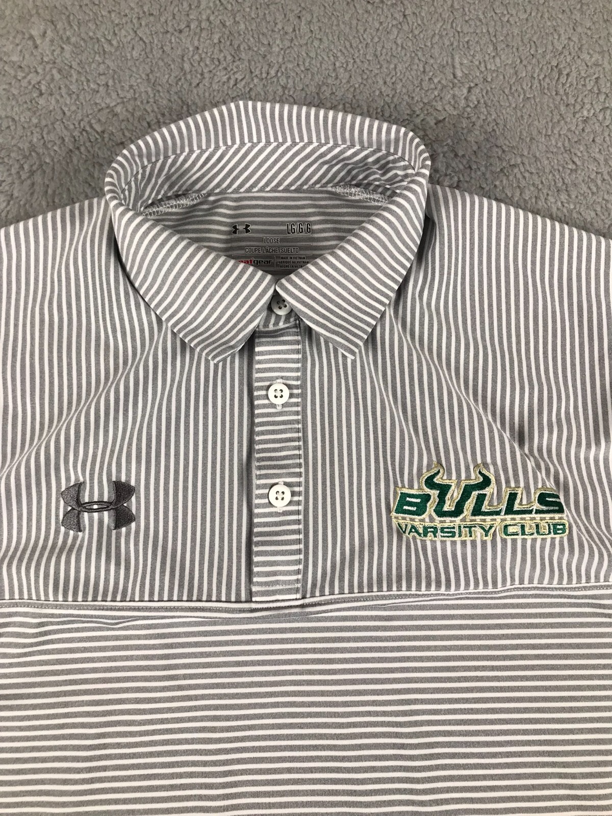 Under Armour Polo Shirt Mens L Gray University South Florida Bulls Varsity Club