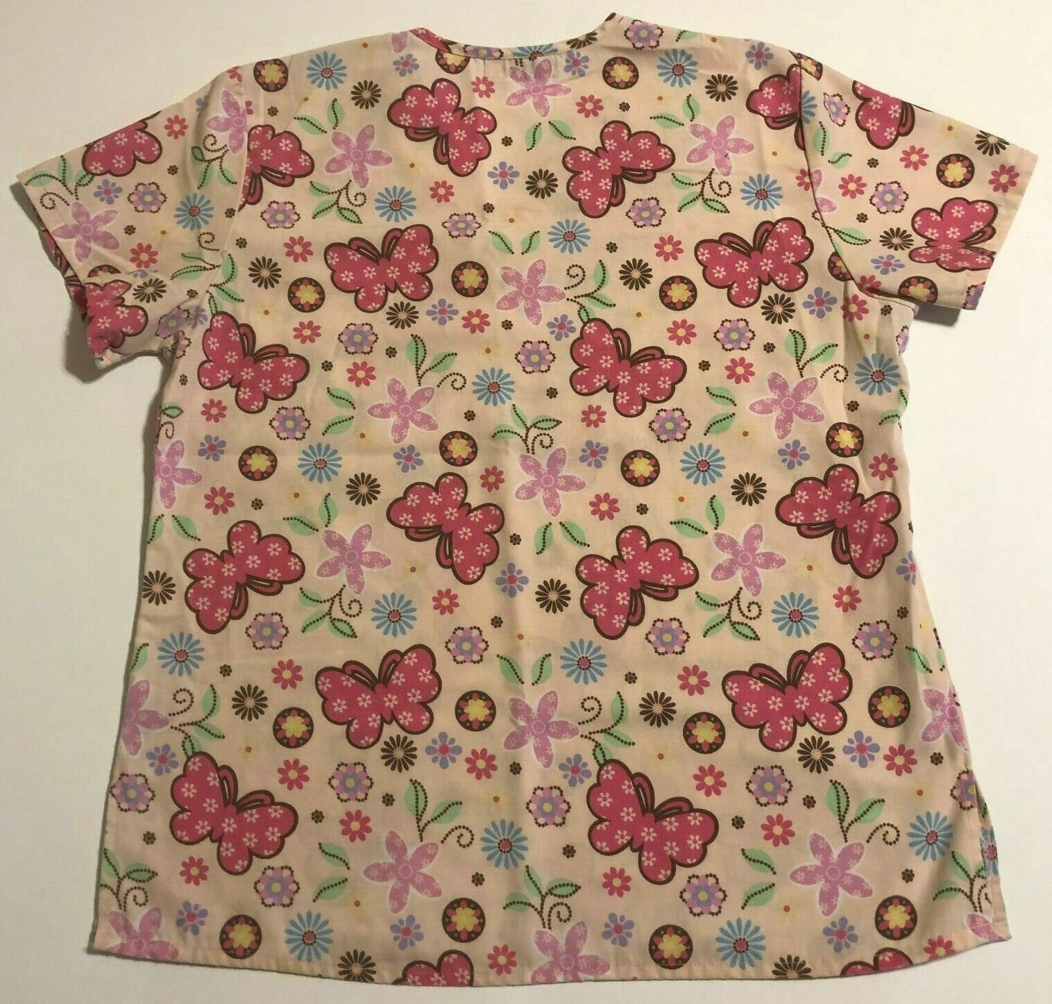 как выглядит Womens Scrub Top Butterflies and Flowers Size Small фото