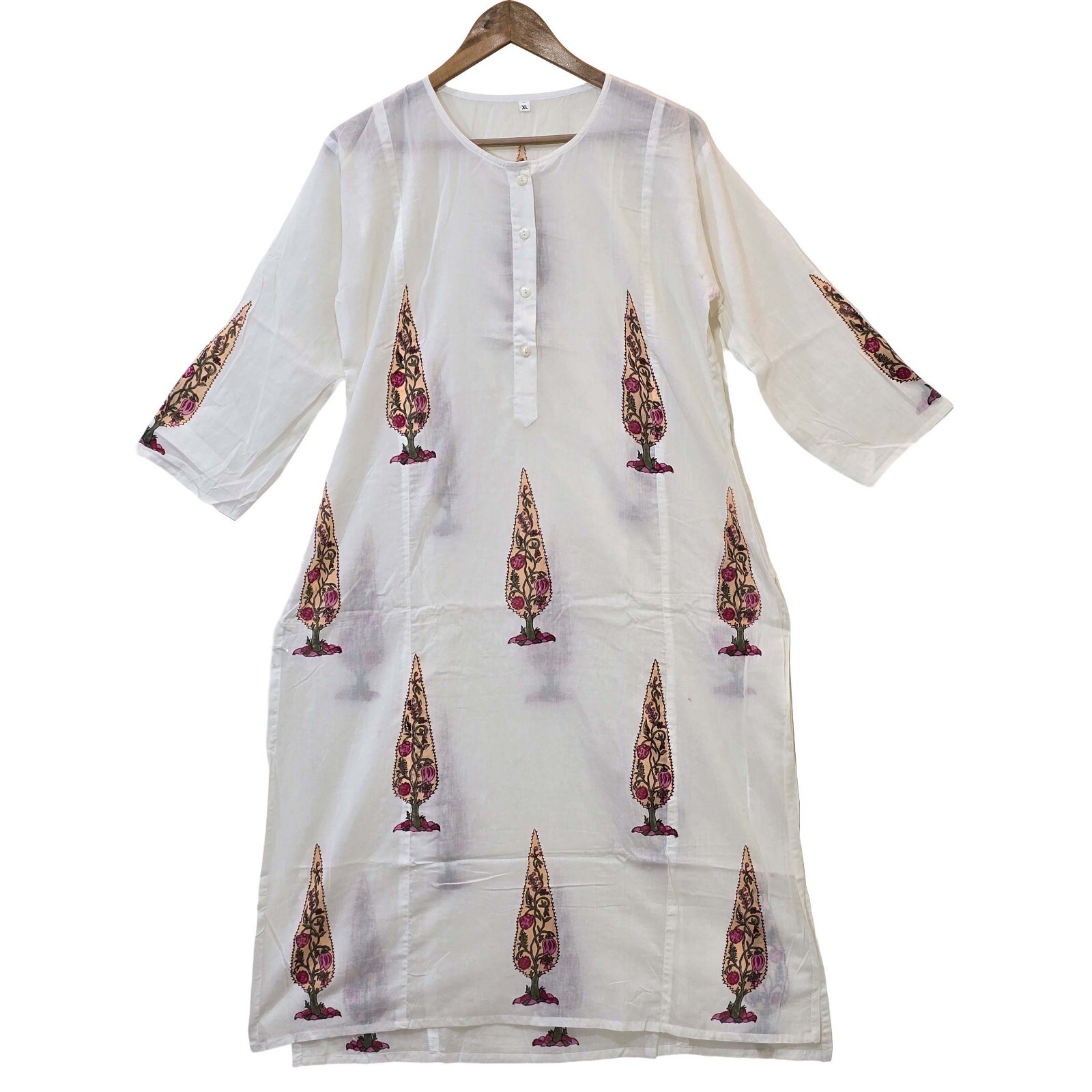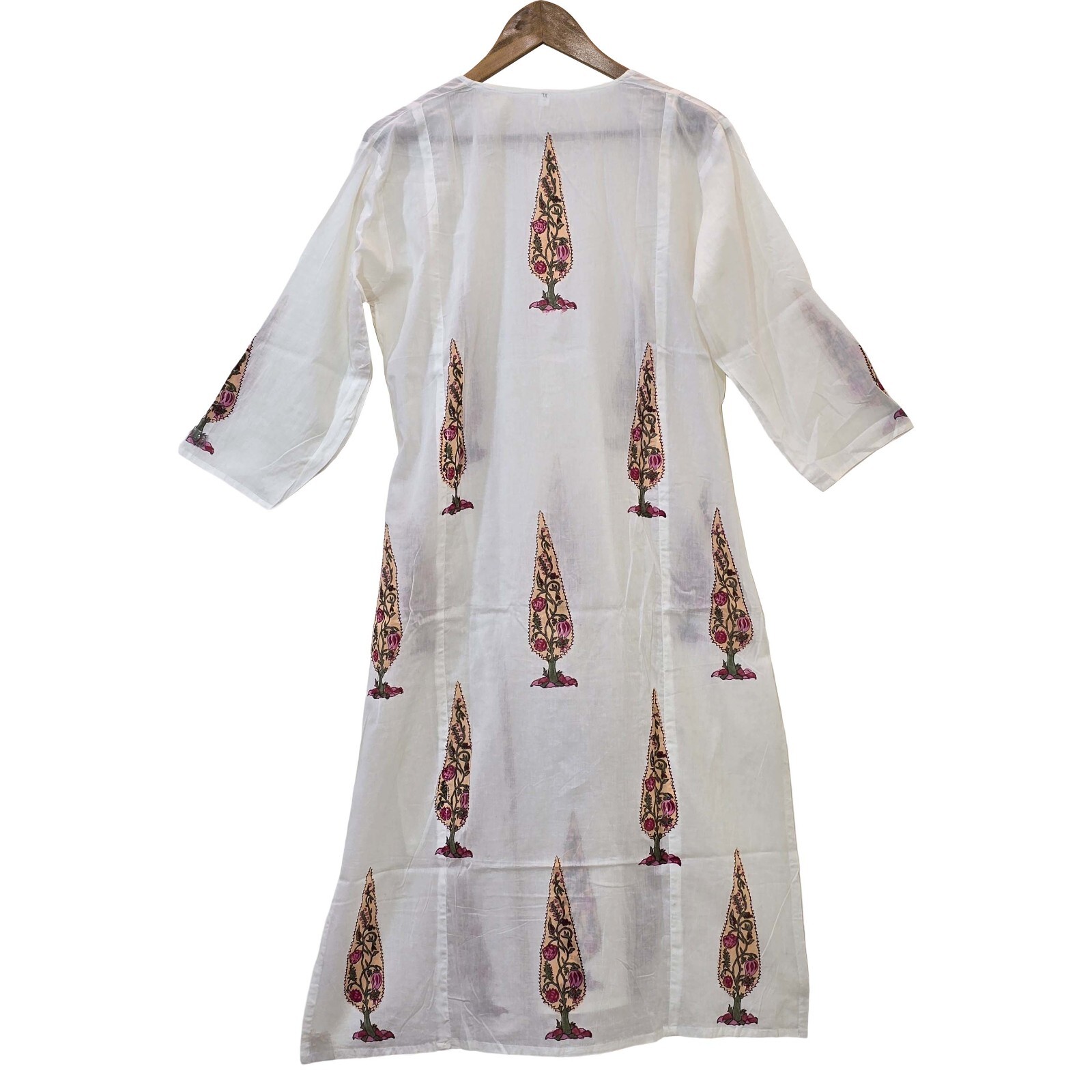 как выглядит Block Printed Cotton Top Jaipuri Print Womens Kurti White Indian Cotton Kurta фото