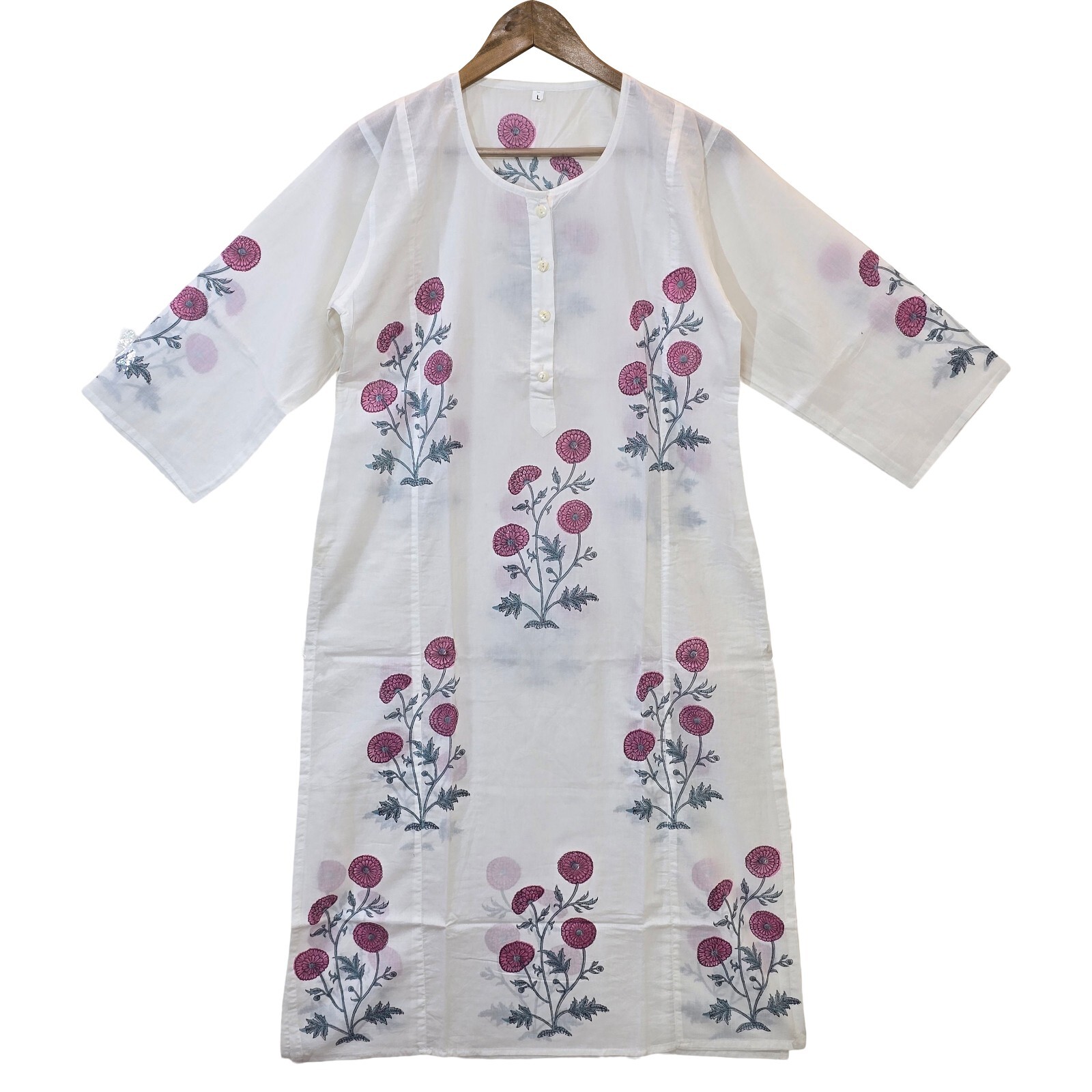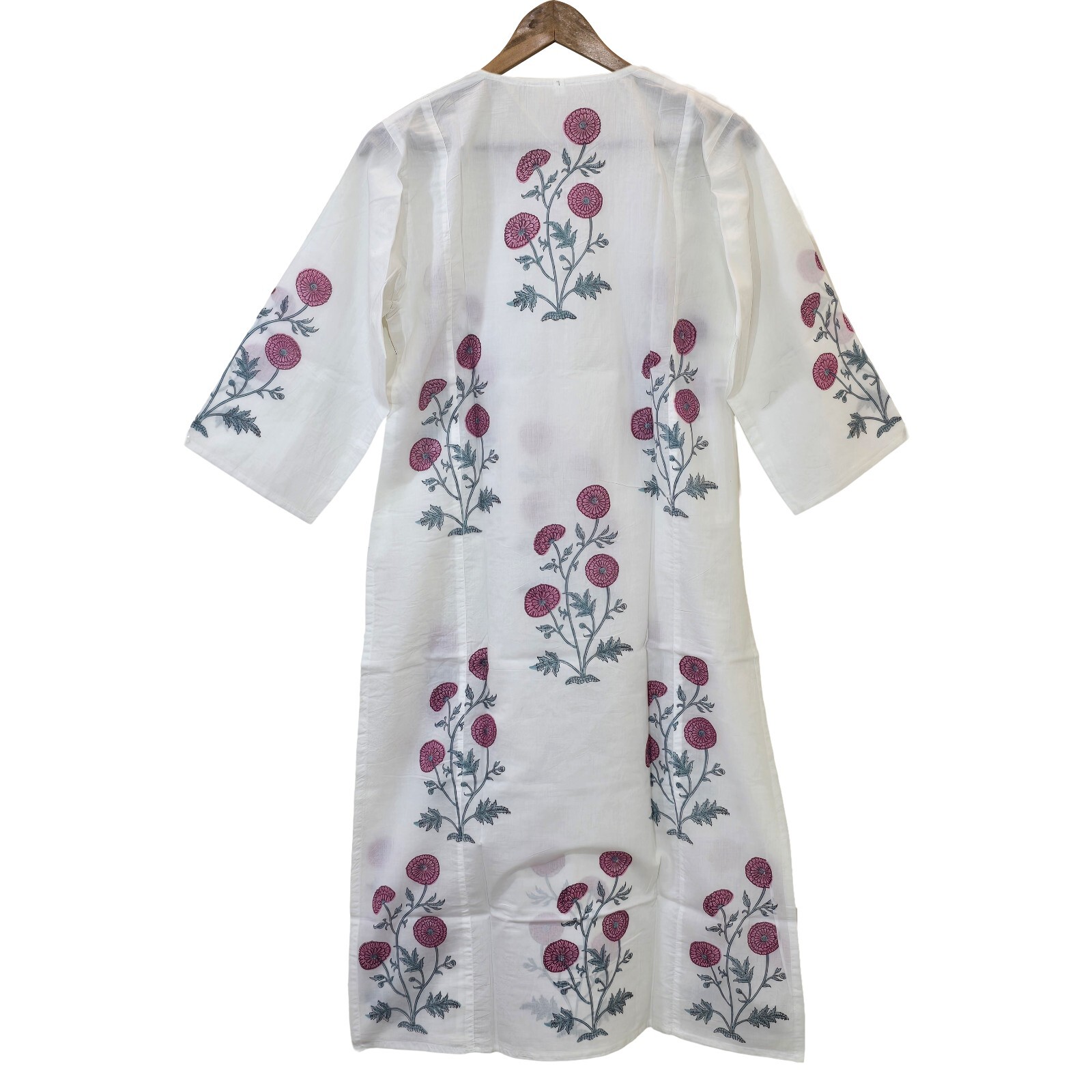 как выглядит Hand Block Print Kurta Indian Cotton For Women White Jaipuri Block Print Kurta фото