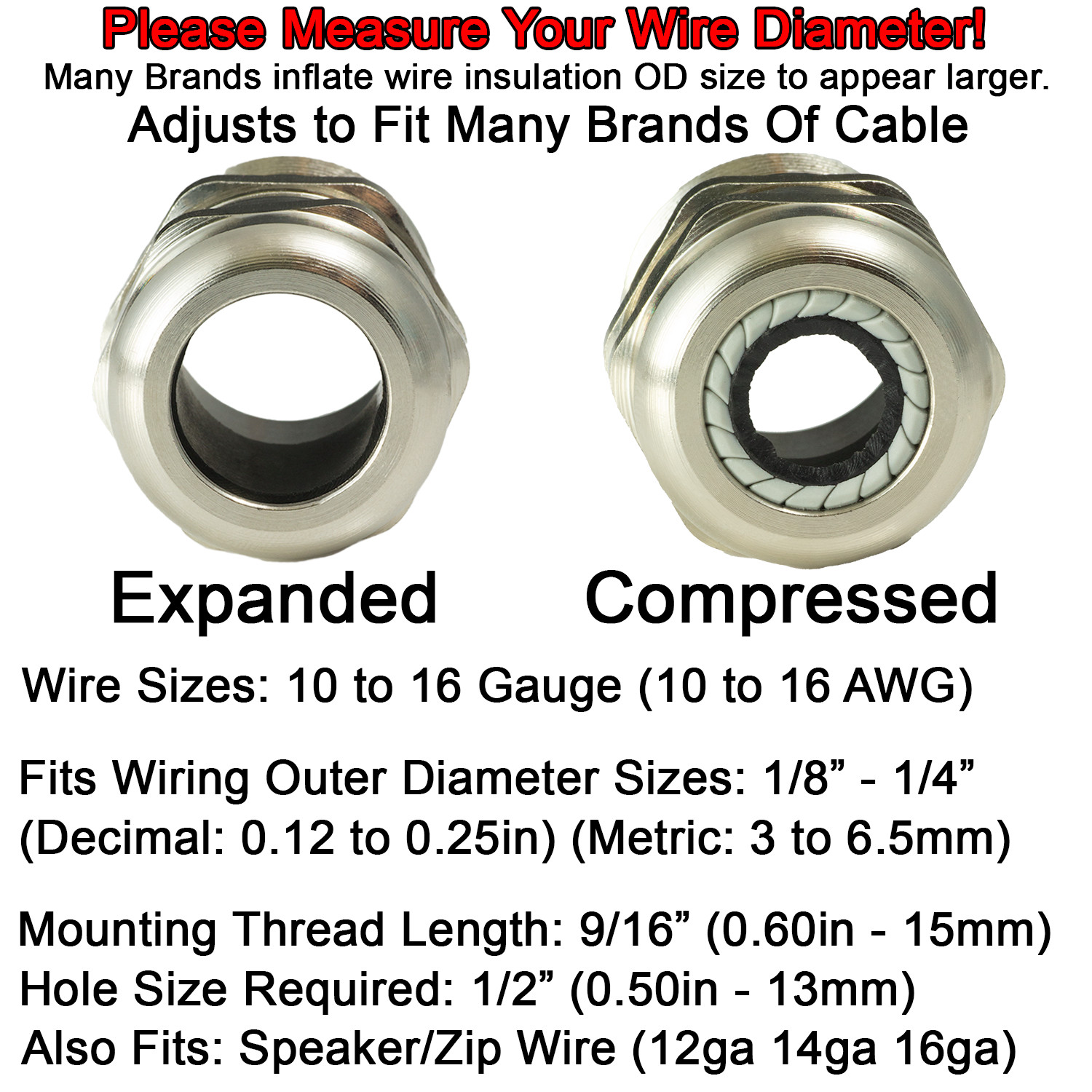 Firewall Grommet Bushing 00 2 4 6 8 Gauge 1/0 2/0 AWG Metal Auto Cable AMP Audio