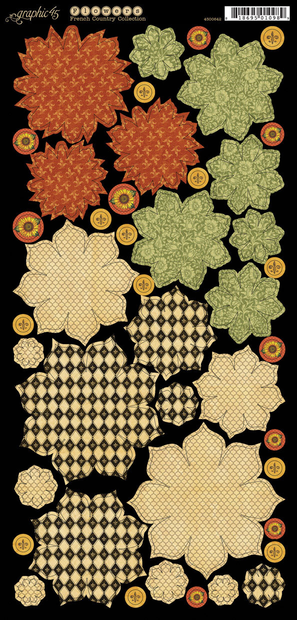 RETIRED Graphic45 FRENCH COUNTRY FLOWERS scrapbooking DIE-CUTS