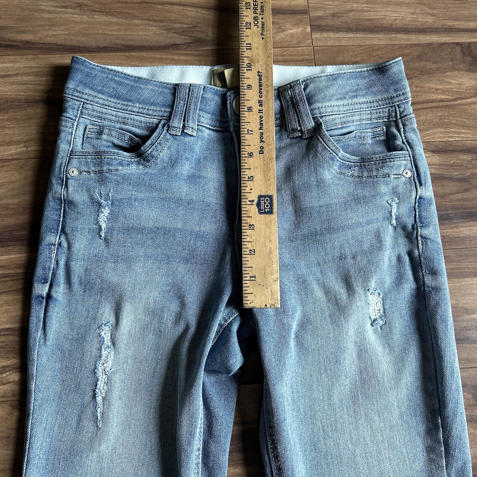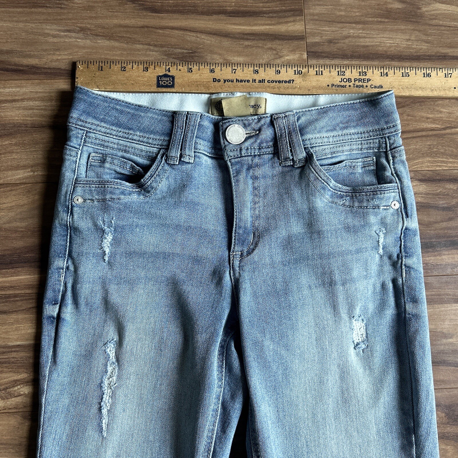 как выглядит Democracy Jeans Womens 4 Blue Ab Technology Skinny Light Wash Distressed Denim фото