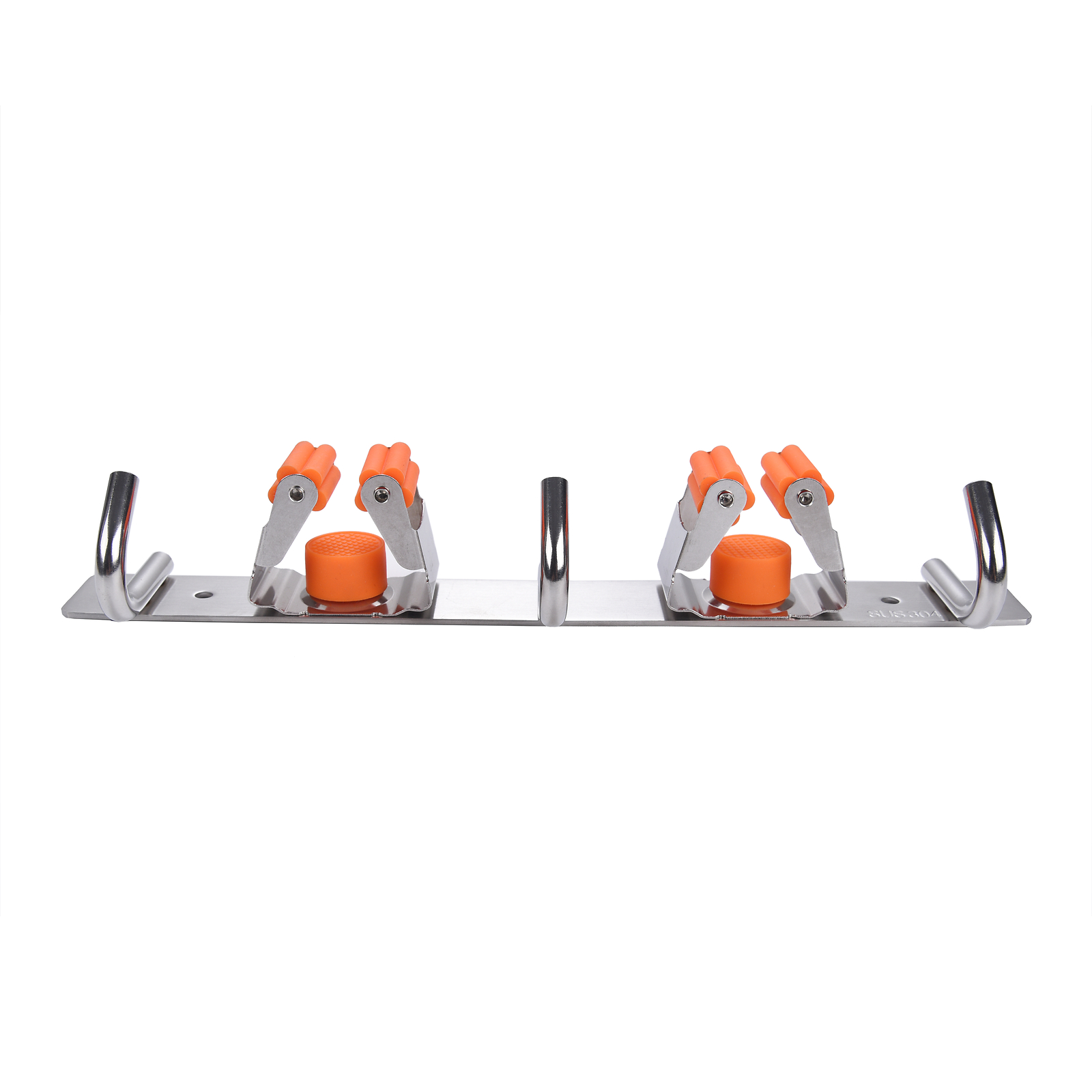 как выглядит Dual Mop Broom Holder w/ 3 Hooks Stainless Wall Mounted Organizer Storage Hanger фото