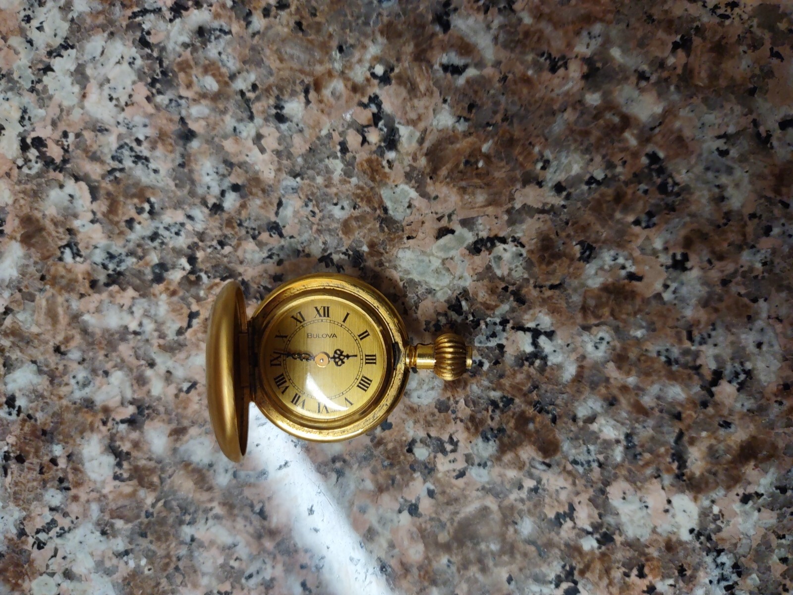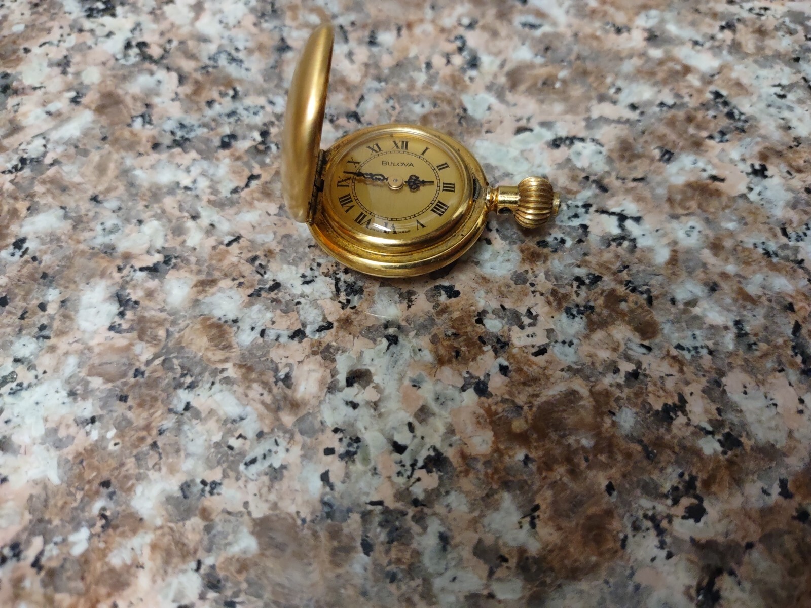 как выглядит Vintage Gold-Plated Bulova Pocket Watch, 1970s, 17 Jewel, Working, Swiss Made фото