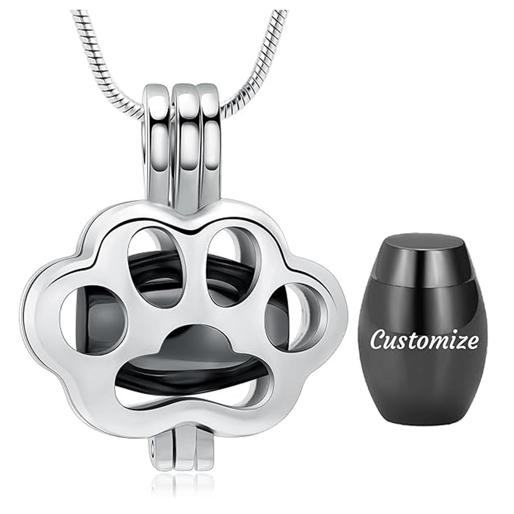 Hollow Paw Print Urn Necklace Dog Cat Pet Cremation Jewelry for Pet Memorial Urn