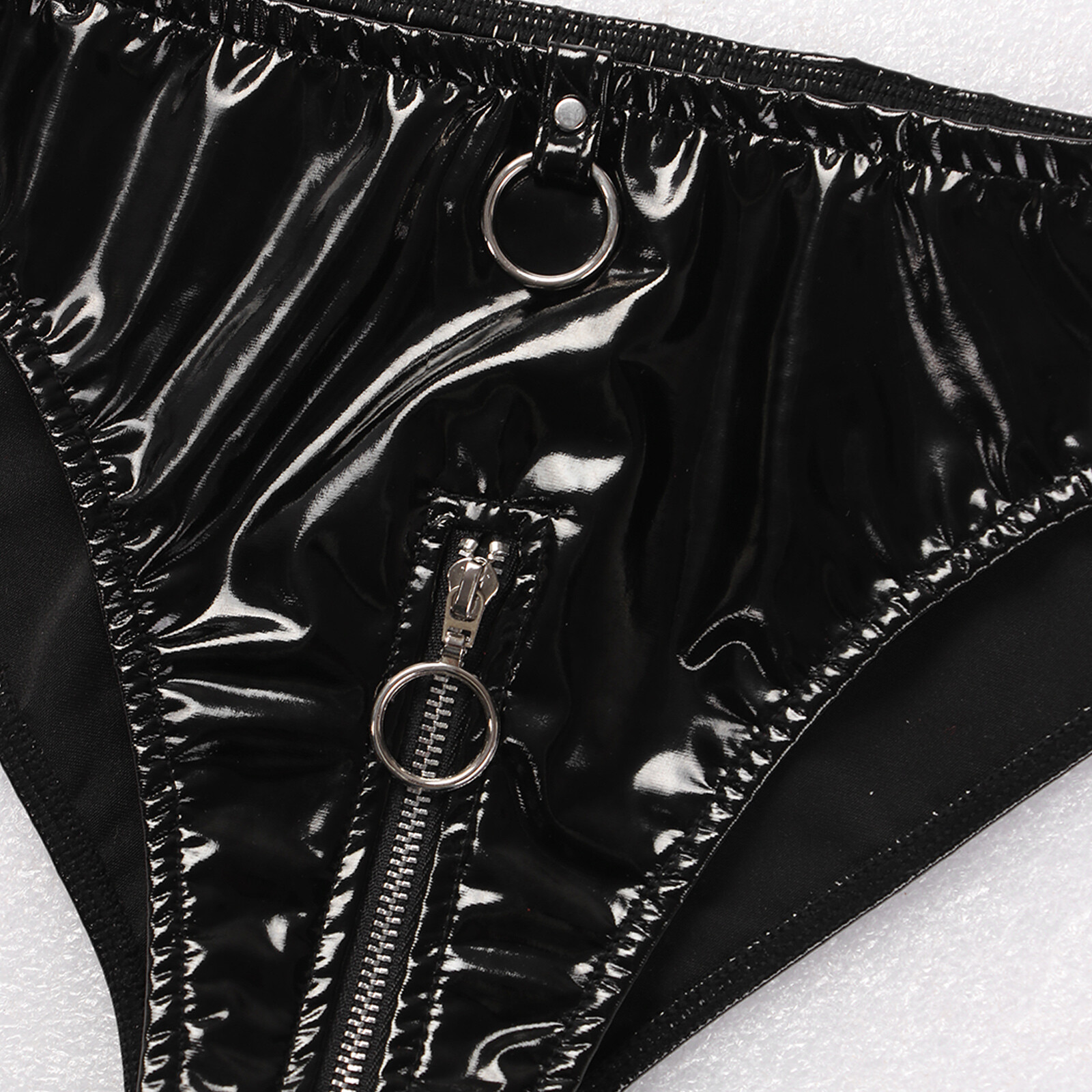 Womens Low Wasit Briefs Shorts Shiny Metallic Leather Hot Pants Rave Clubwear