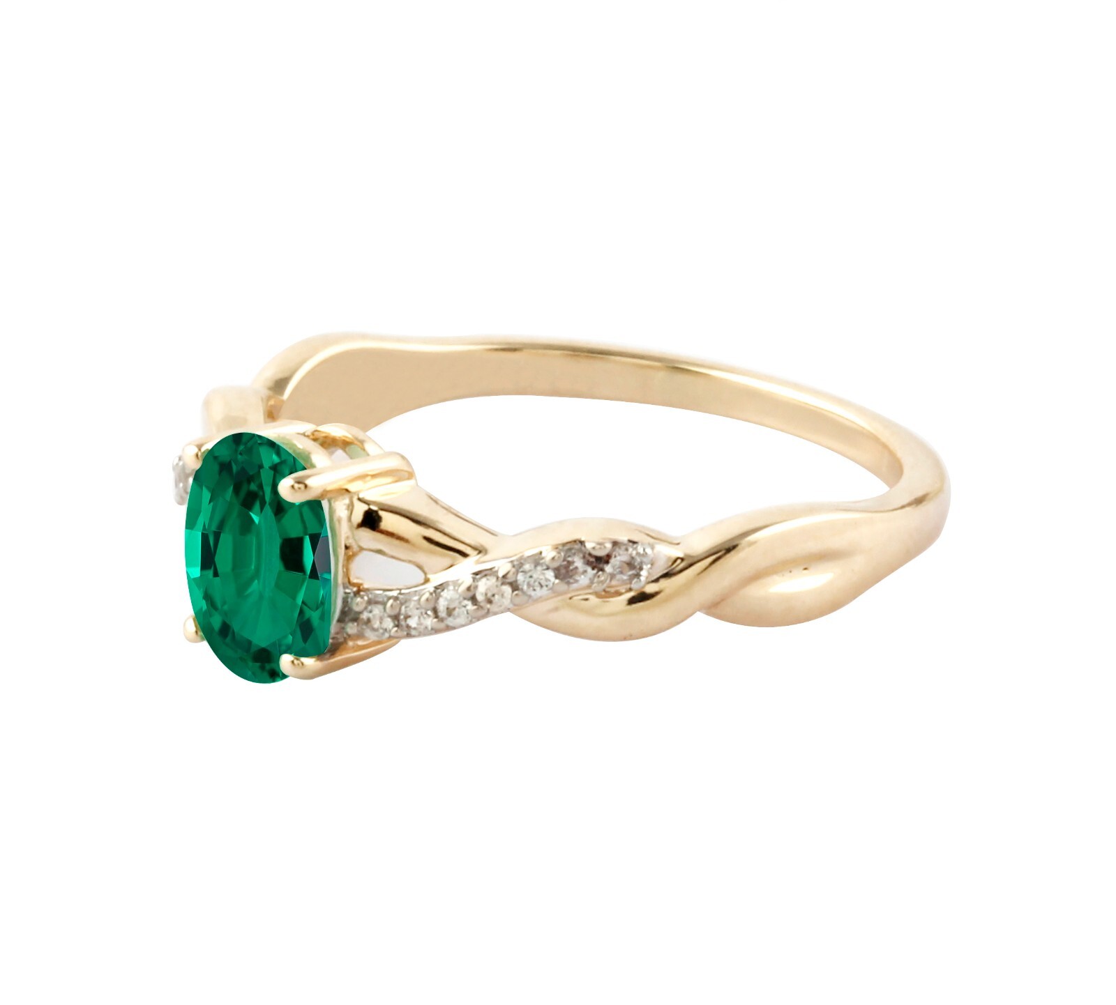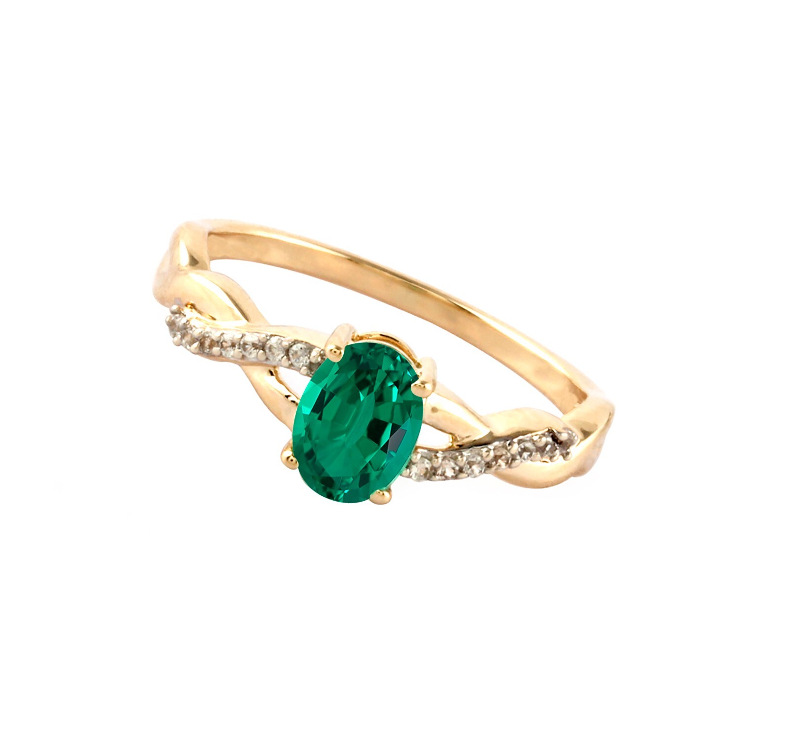 925 Sterling Silver 1 Ct Green Emerald Twisted Shank Ring