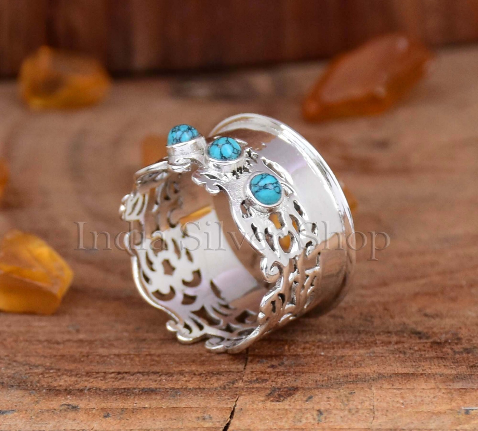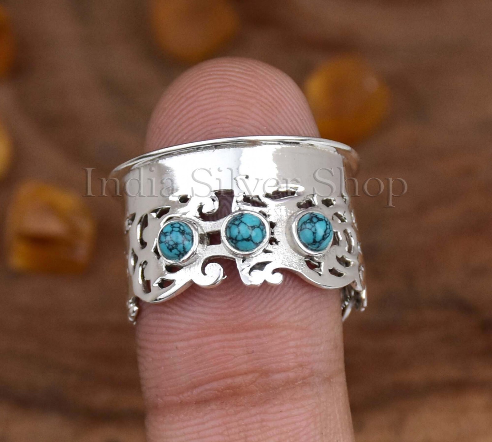 как выглядит Designer Boho Wide Band Turquoise Ring 925 Sterling Silver Ring For Her фото