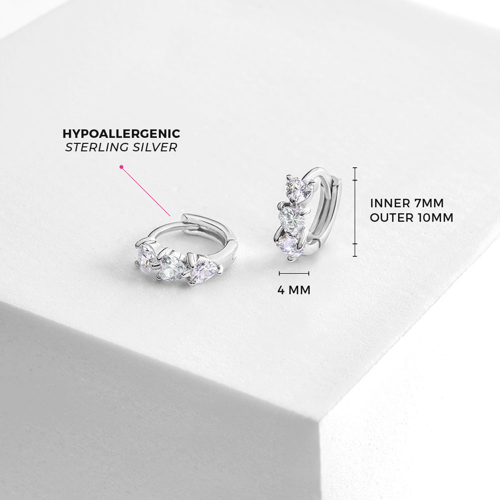 Cascading CZ Heart Hoop 7mm Baby / Toddler / Kids Earrings - Sterling Silver