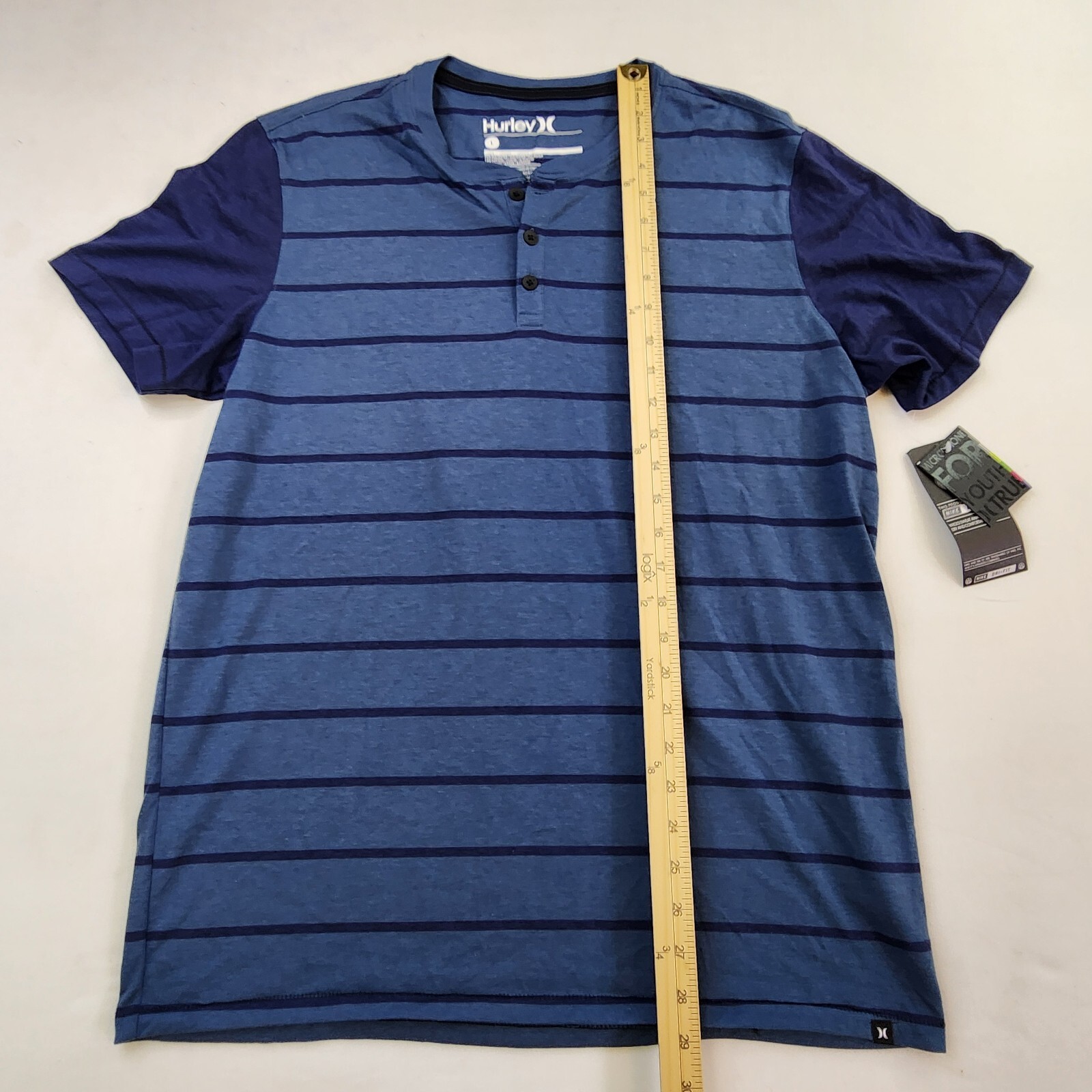 как выглядит Hurley Shirt Men L Blue Striped Active 1/4 Button Casual Everyday Sports New фото