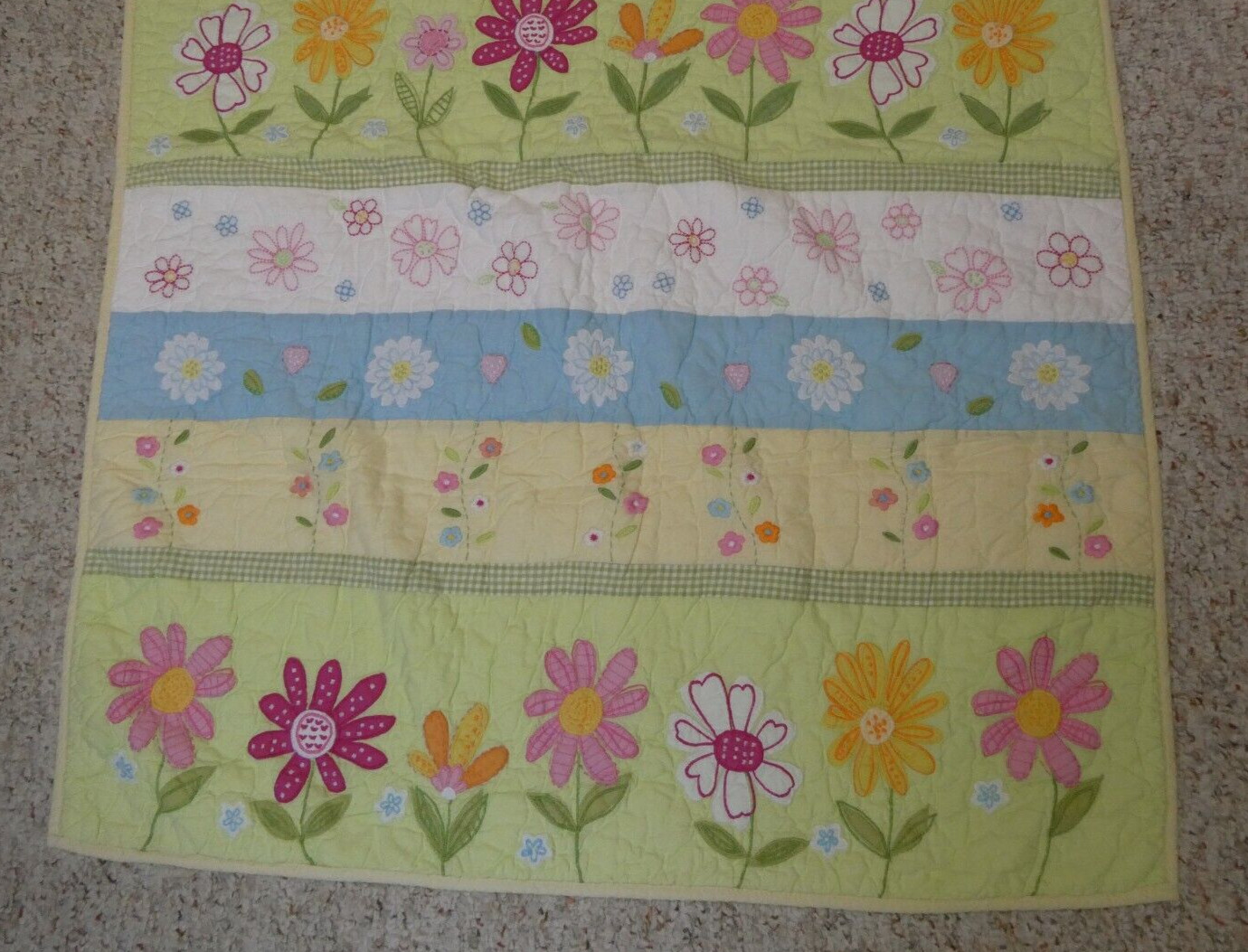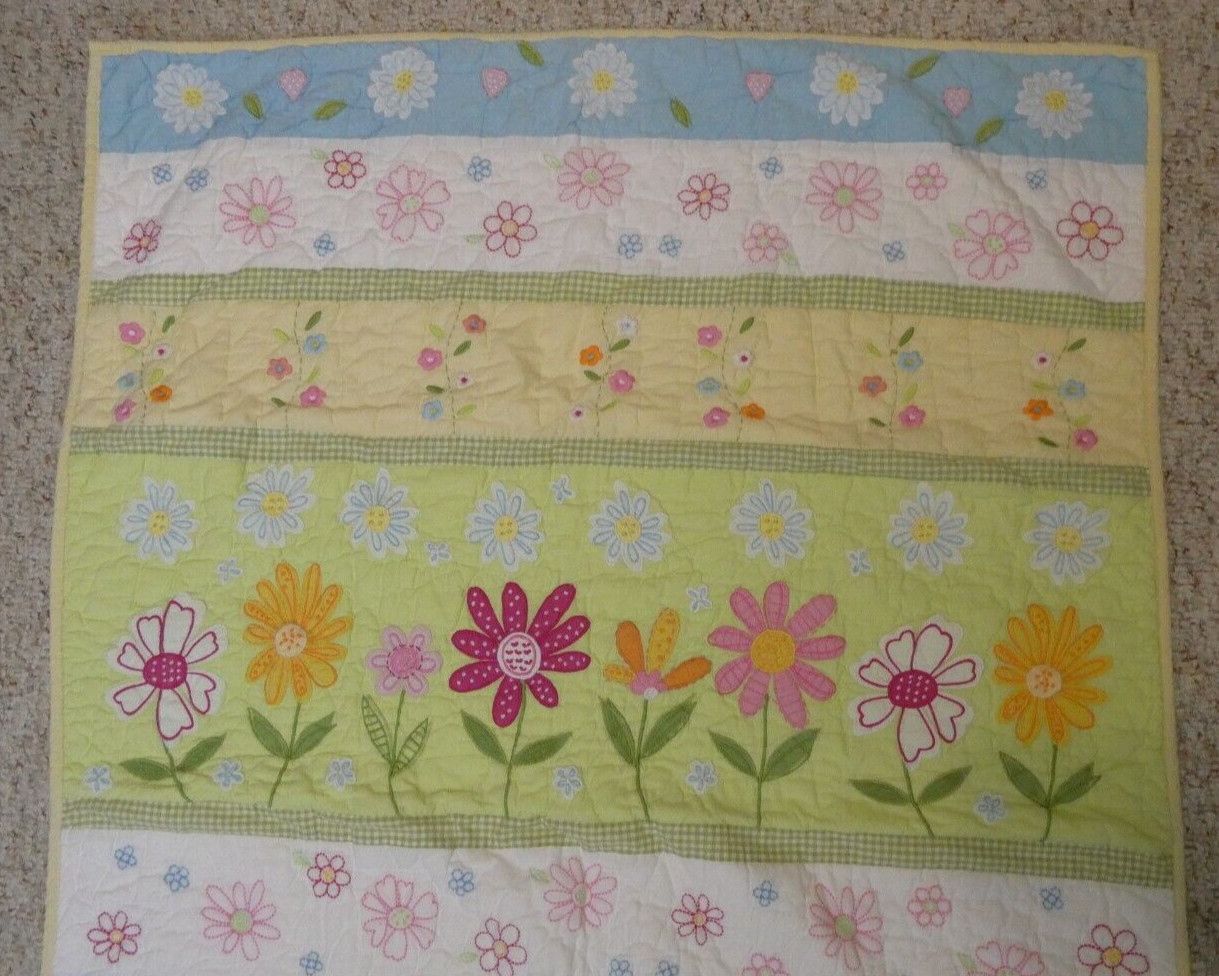 Pottery Barn Kids Toddler Quilt Blanket 48 x 35 Daisy Flowers Floral Garden