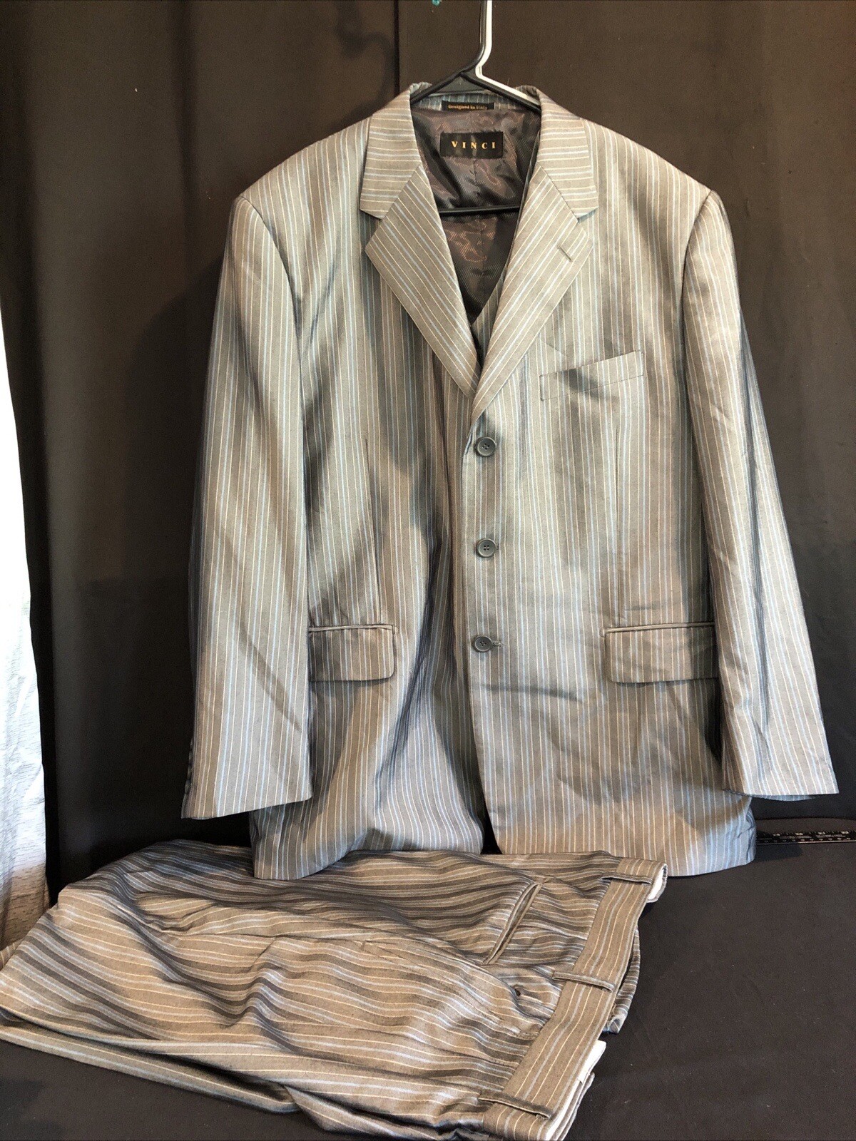 как выглядит Vinci Men s 3 Piece 3 Button Striped Suit Z005 фото