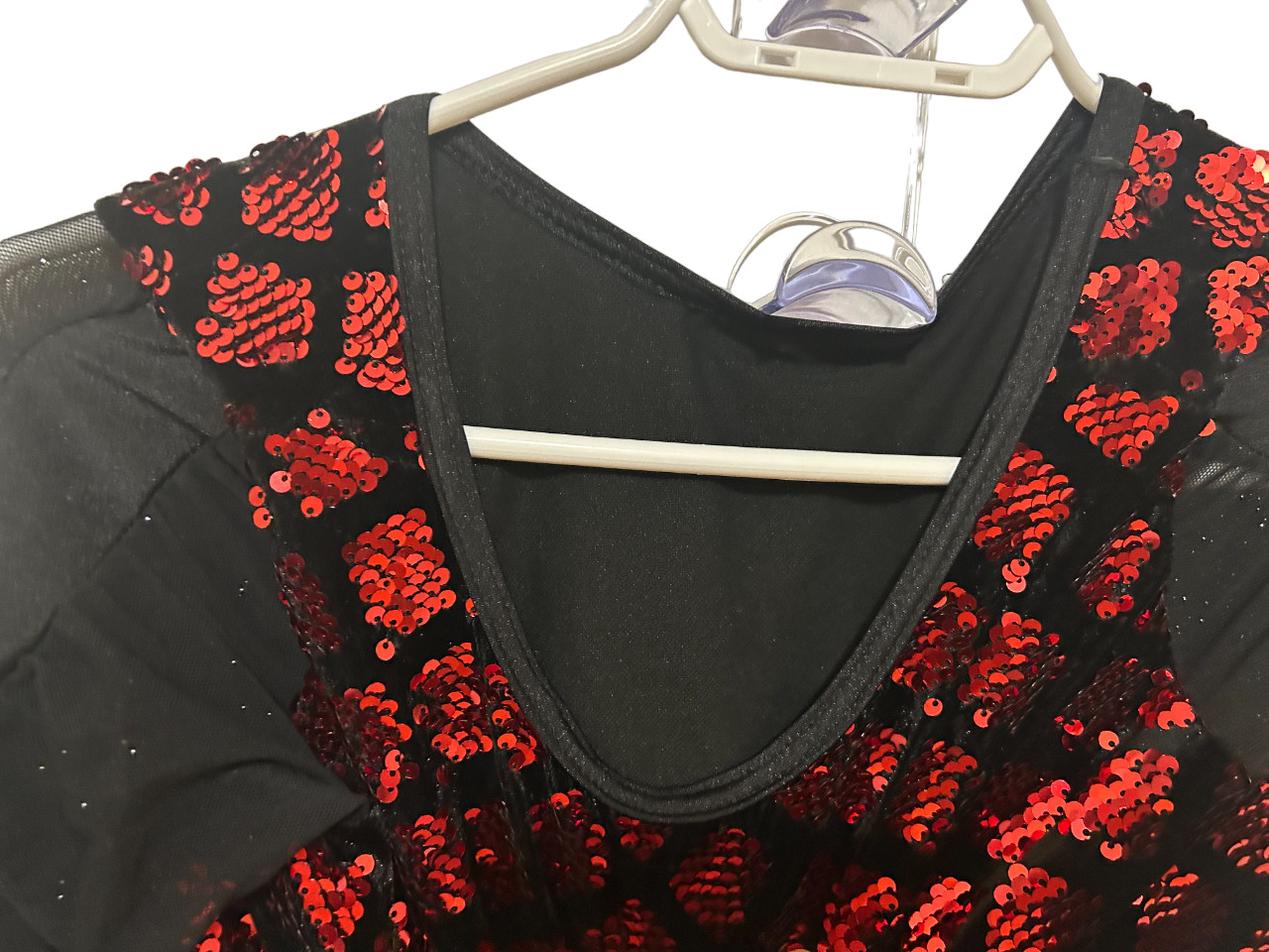 Custom Jazz Contemporary Dance, Jumpsuit Stage Costume Red Sequin 10-12 yrs Girl