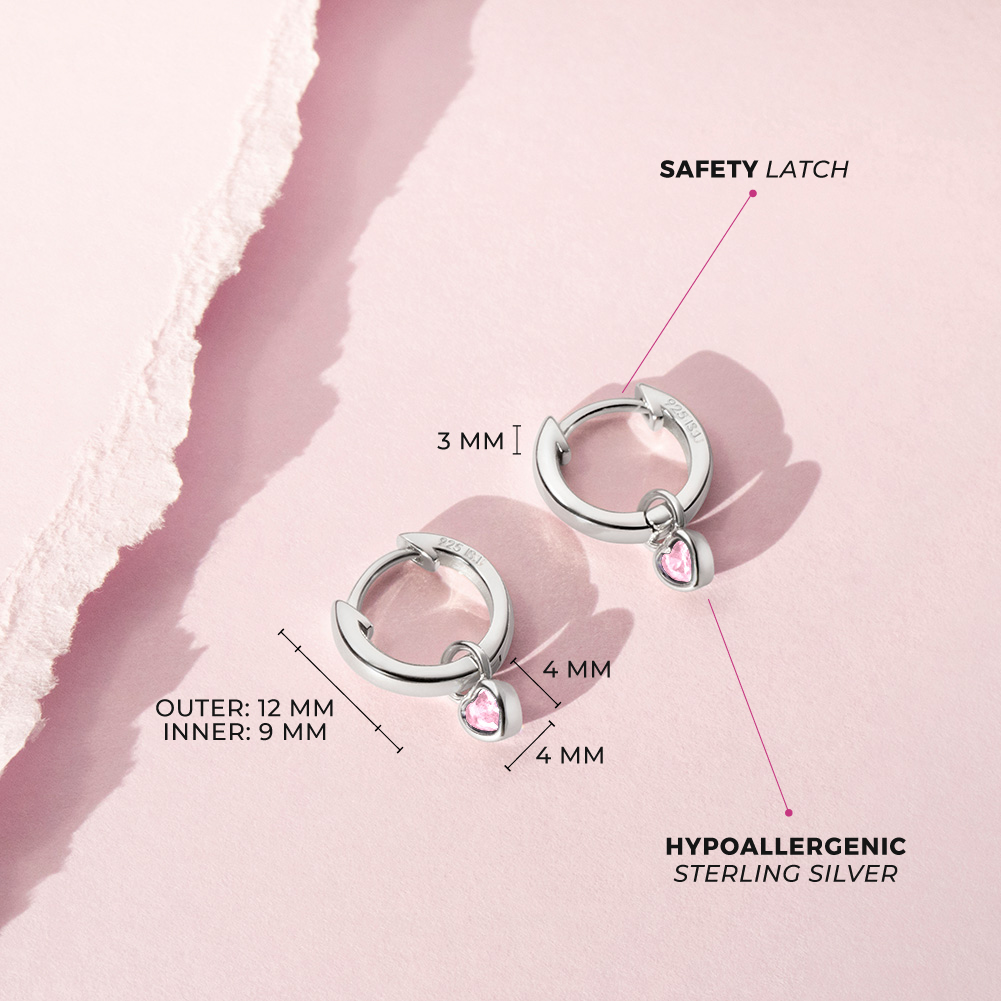 как выглядит CZ Birthstone Heart 9mm Girls Earrings Hoop/Huggie Dangle - Sterling Silver фото